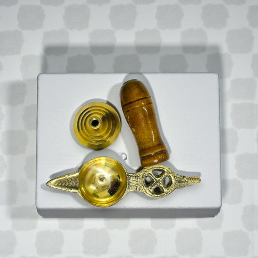 Elegant Standing Brass Aarti Diya with Heat-Resistant Wooden Handle