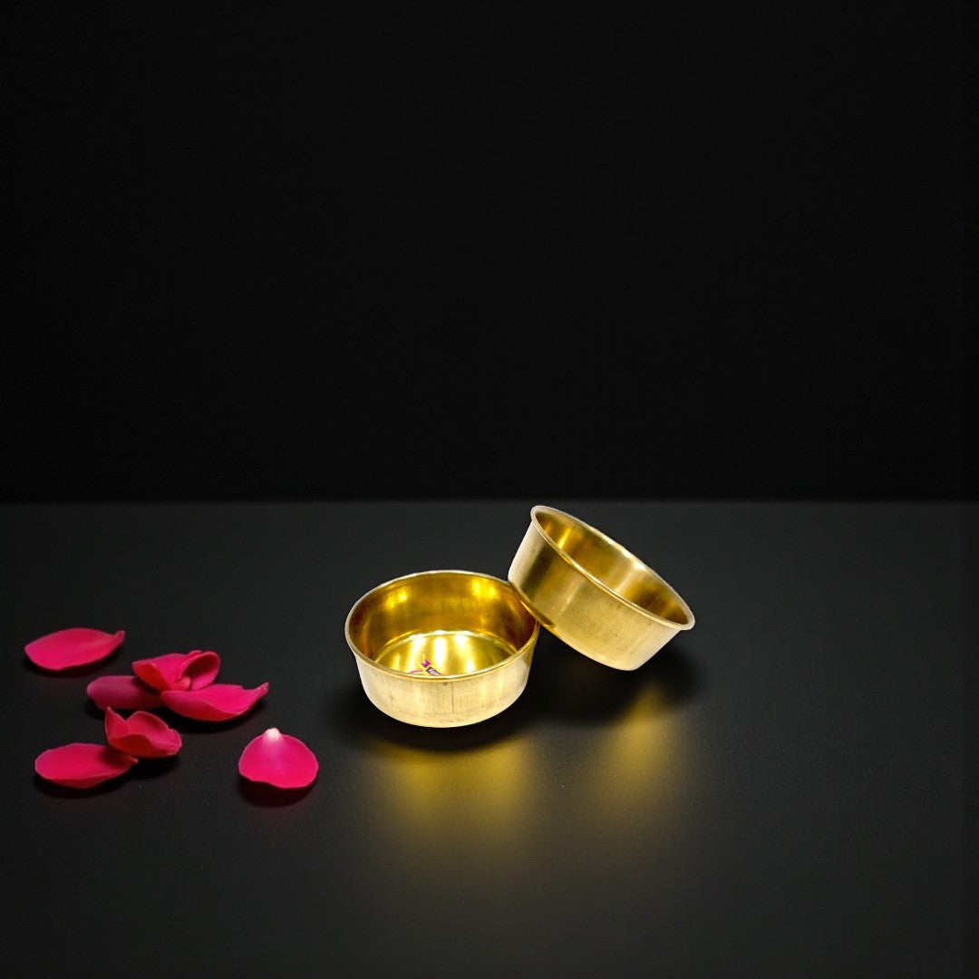 A fundamental piece for every home mandir, this classic Pital Katori (Brass Bowl) is essential for various ritualistic and ceremonial purposes. Its simple, elegant design highlights the purity and brilliance of the brass, making it a timeless addition to your sacred collection.