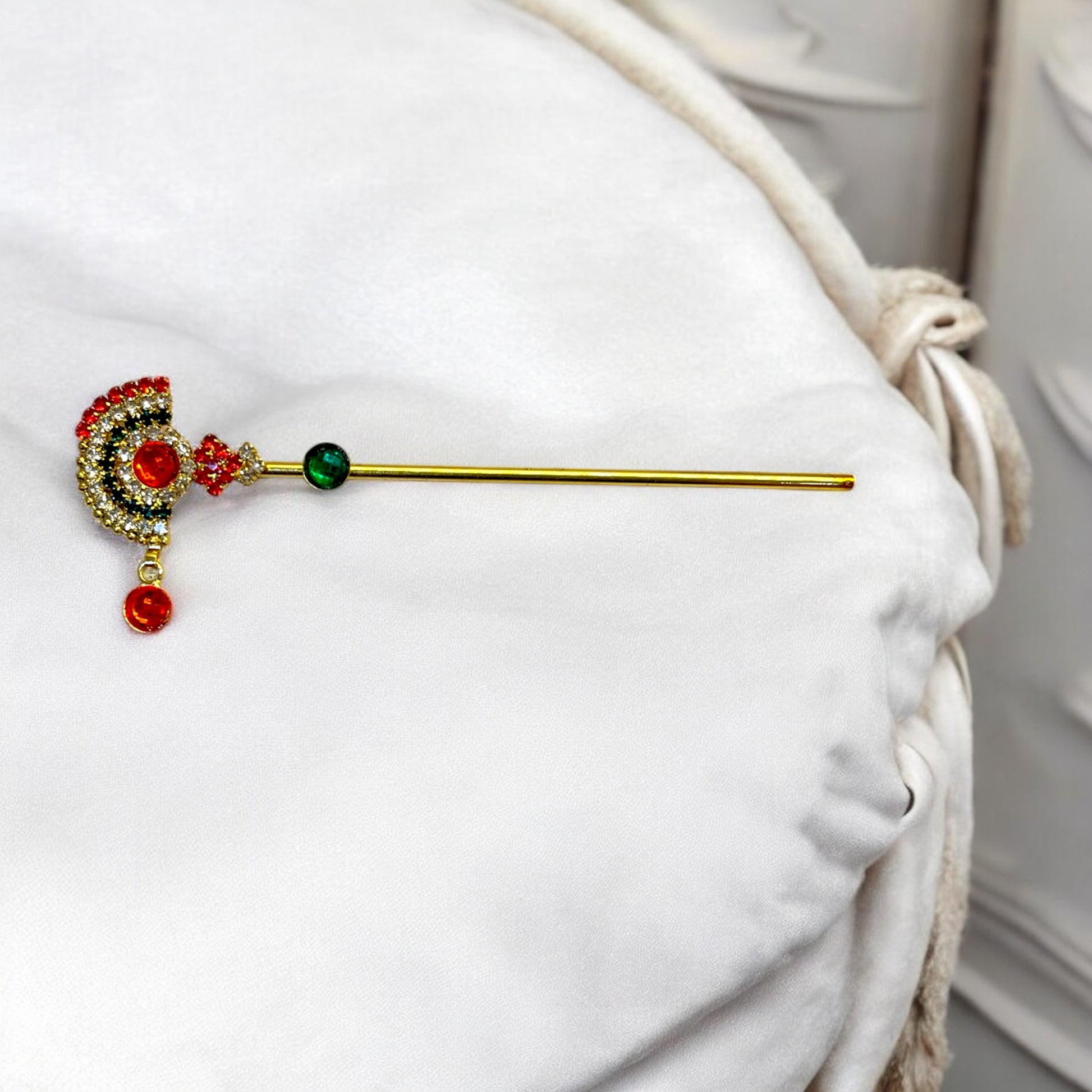 Bring divine elegance to your Thakurji’s appearance with this stunning Zerkin Bansi (SPC-431). Beautifully designed with intricate detailing and studded with sparkling Zerkin stones, this flute radiates devotion and charm.