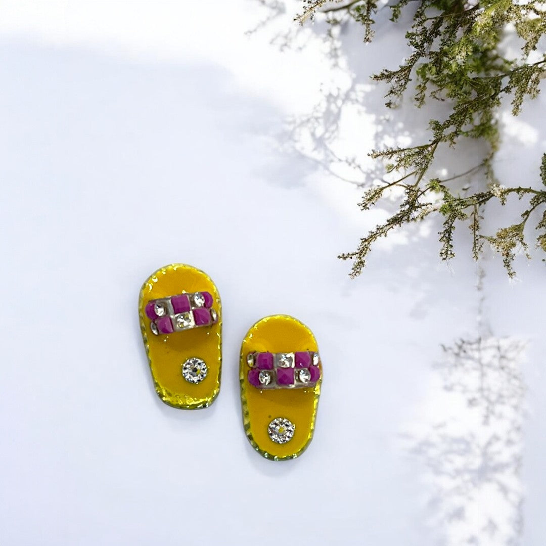 Step into the realm of devotion with these intricately crafted Charan (footprints), designed to honor the divine presence of Laddu Gopal Ji. Revered for their significance in Hindu mythology, these Charan symbolize the loving footsteps of the beloved deity.