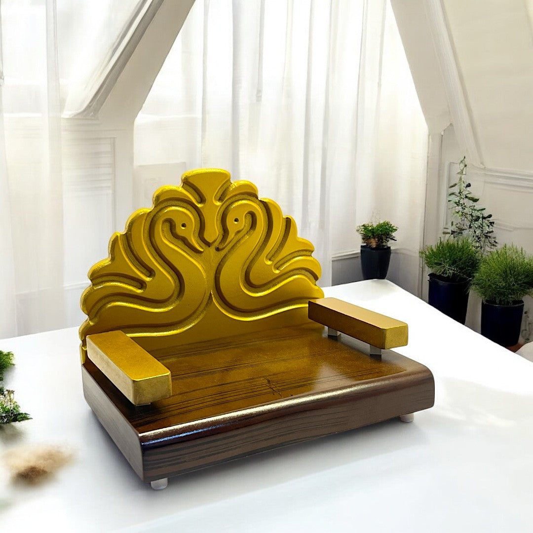 Elegant Mor Design Wooden Singhasan for Deity Idols