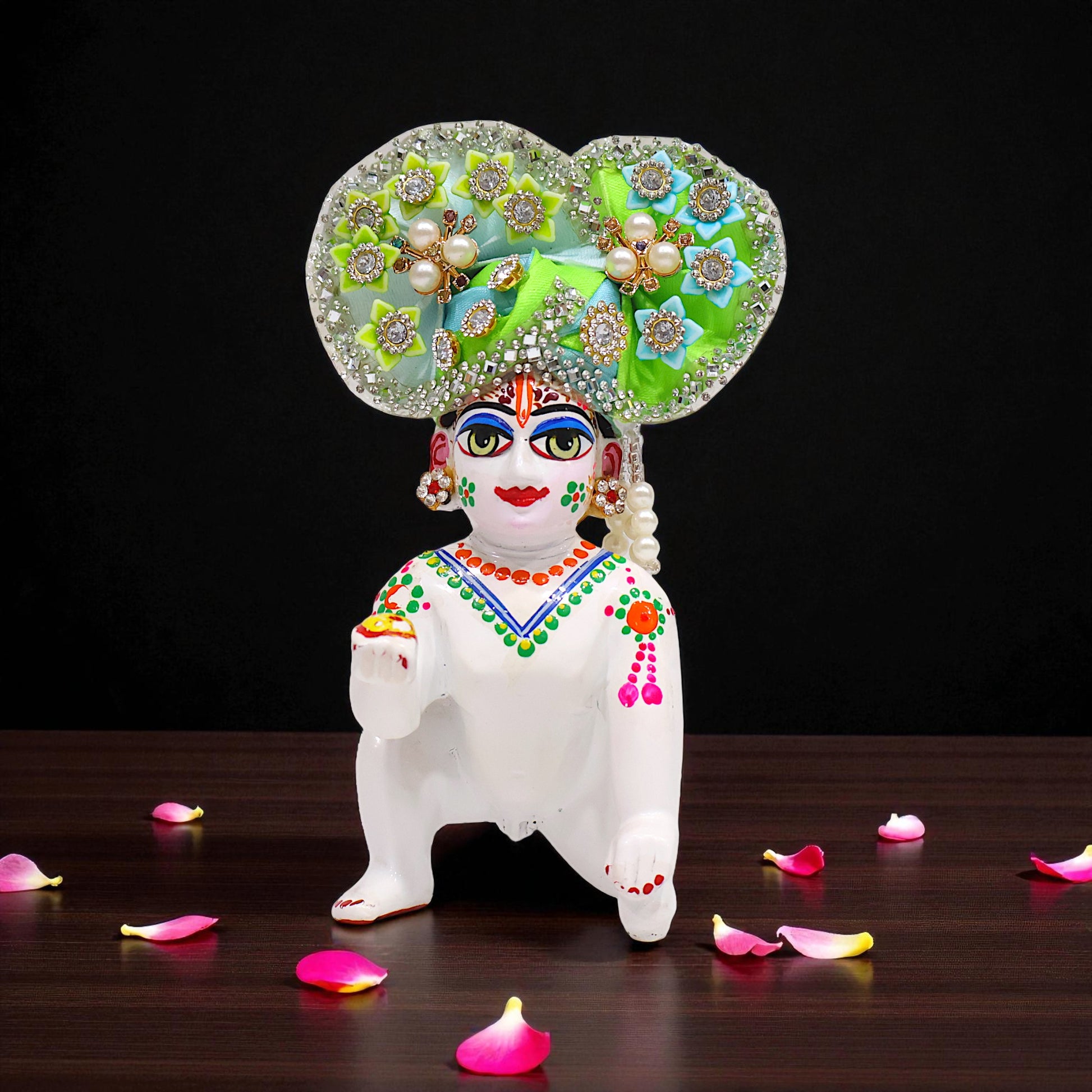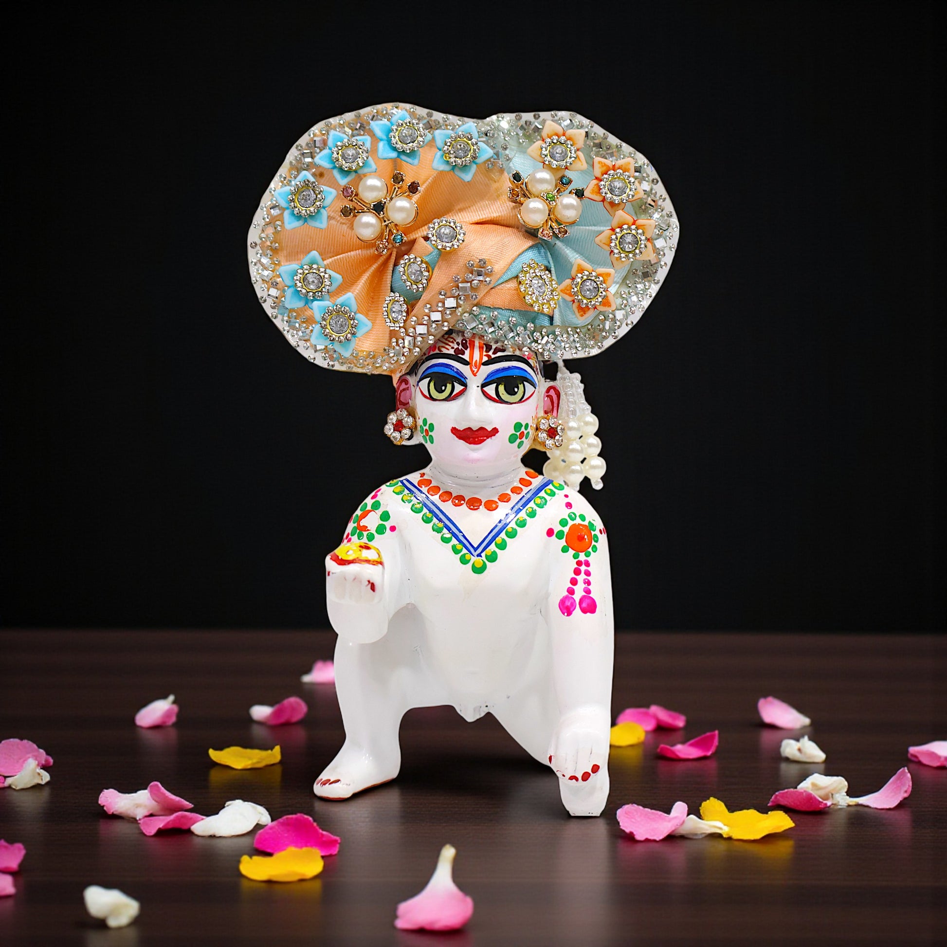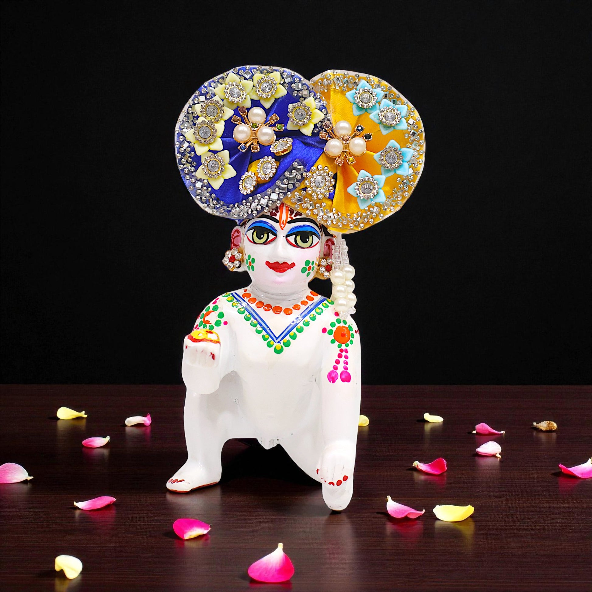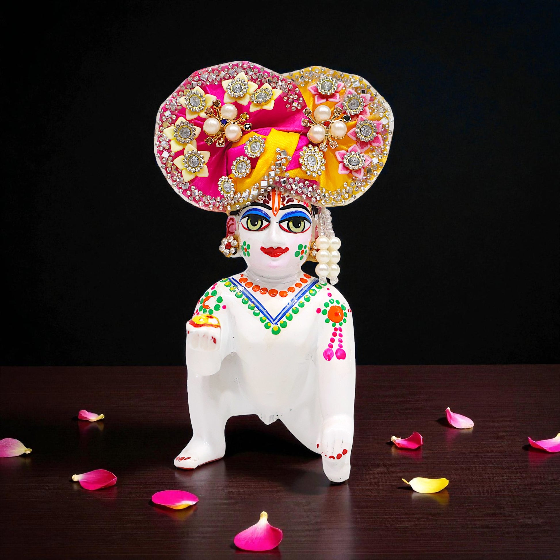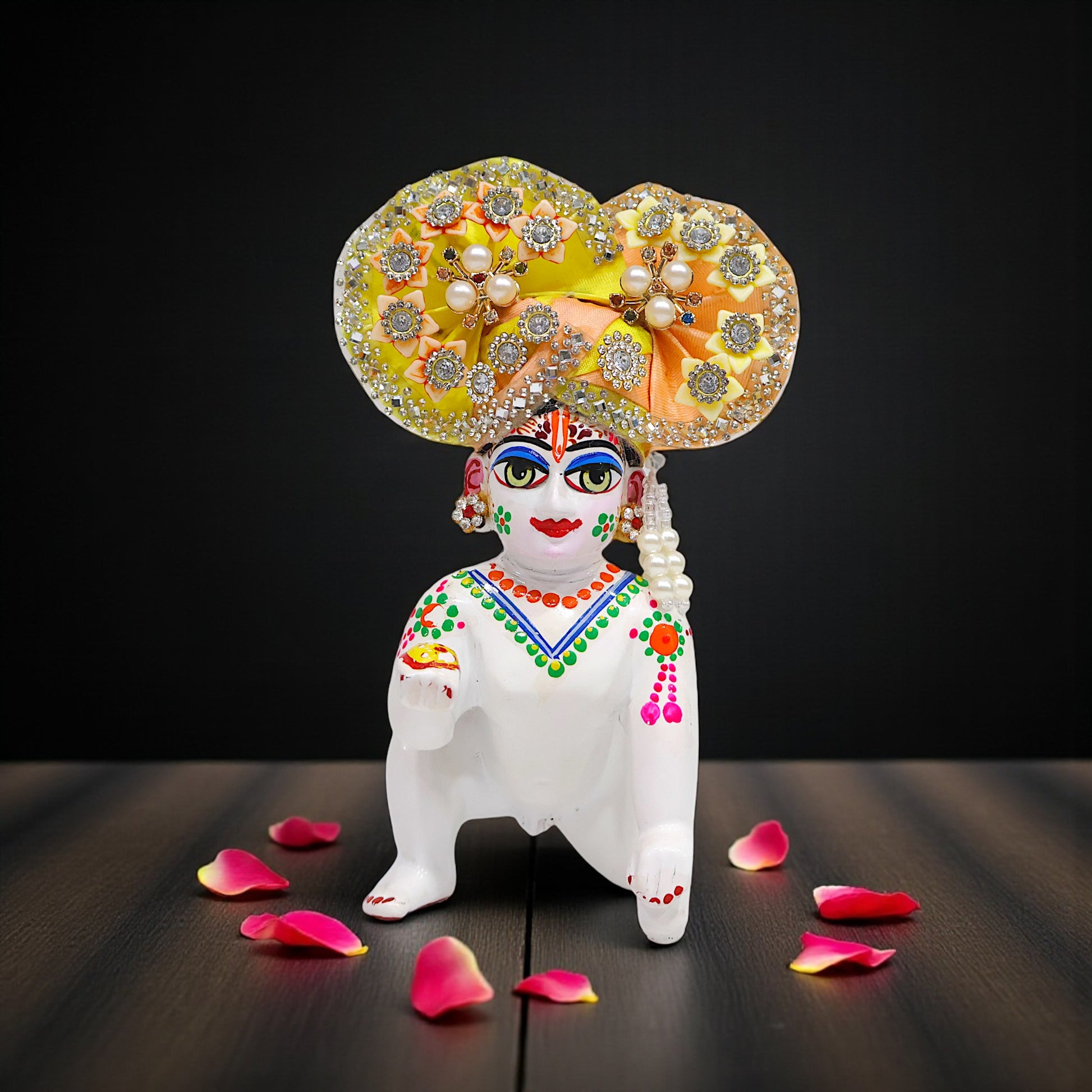 Adorn your beloved Laddu Gopal with this magnificent and luxurious Pagri from Shri Poshak, designed to add unparalleled grace and grandeur to his shringar.