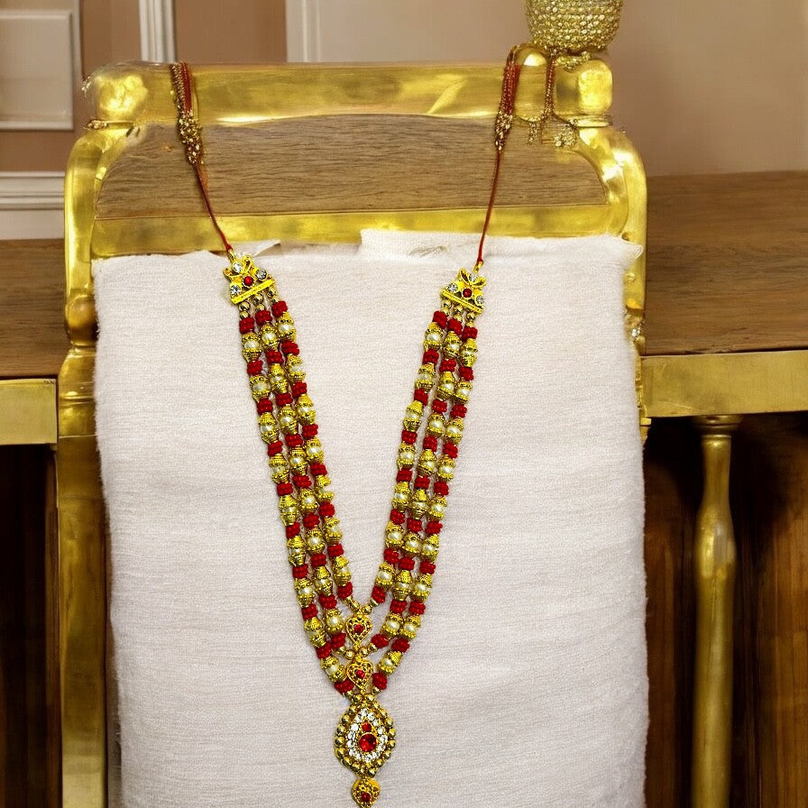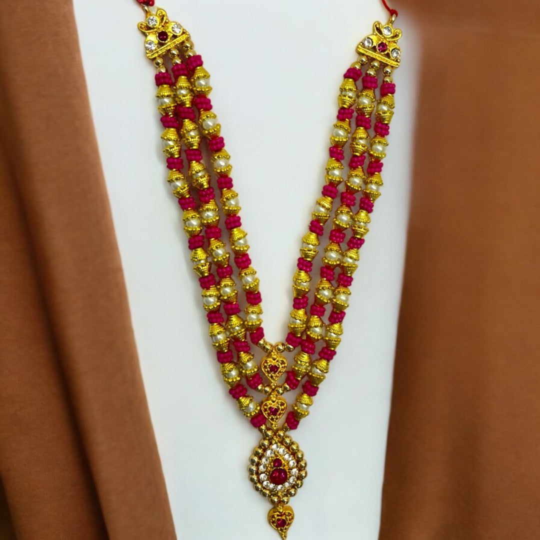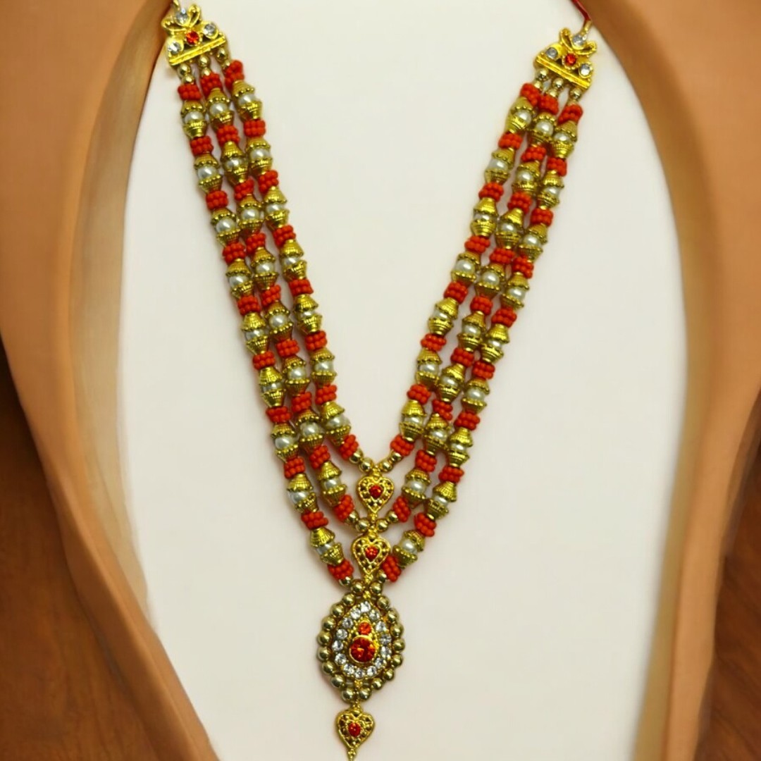 Bring a touch of royal devotion to your deity with this exquisitely handcrafted multi-layer Haar, specially designed for standing idols like Radha Rani, Krishna Ji, Mata Rani, and other sacred murtis. Each element is beautifully arranged to enhance your idol's divine presence and elevate your pooja decor.