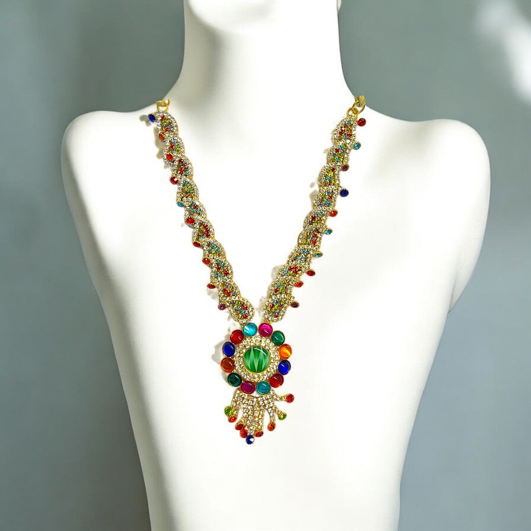Premium Craftsmanship: Intricate handwork with high-shine zerkin stones and a golden finish.