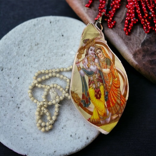 Add a touch of devotion to your spiritual practice with our beautifully crafted Krishna Print Jholi Mala Bag. Designed with vibrant Krishna motifs, this mala bag is perfect for safely carrying your japa mala while enhancing your meditation and prayer rituals. It is a blend of spirituality and practicality, thoughtfully designed for daily use or gifting purposes.