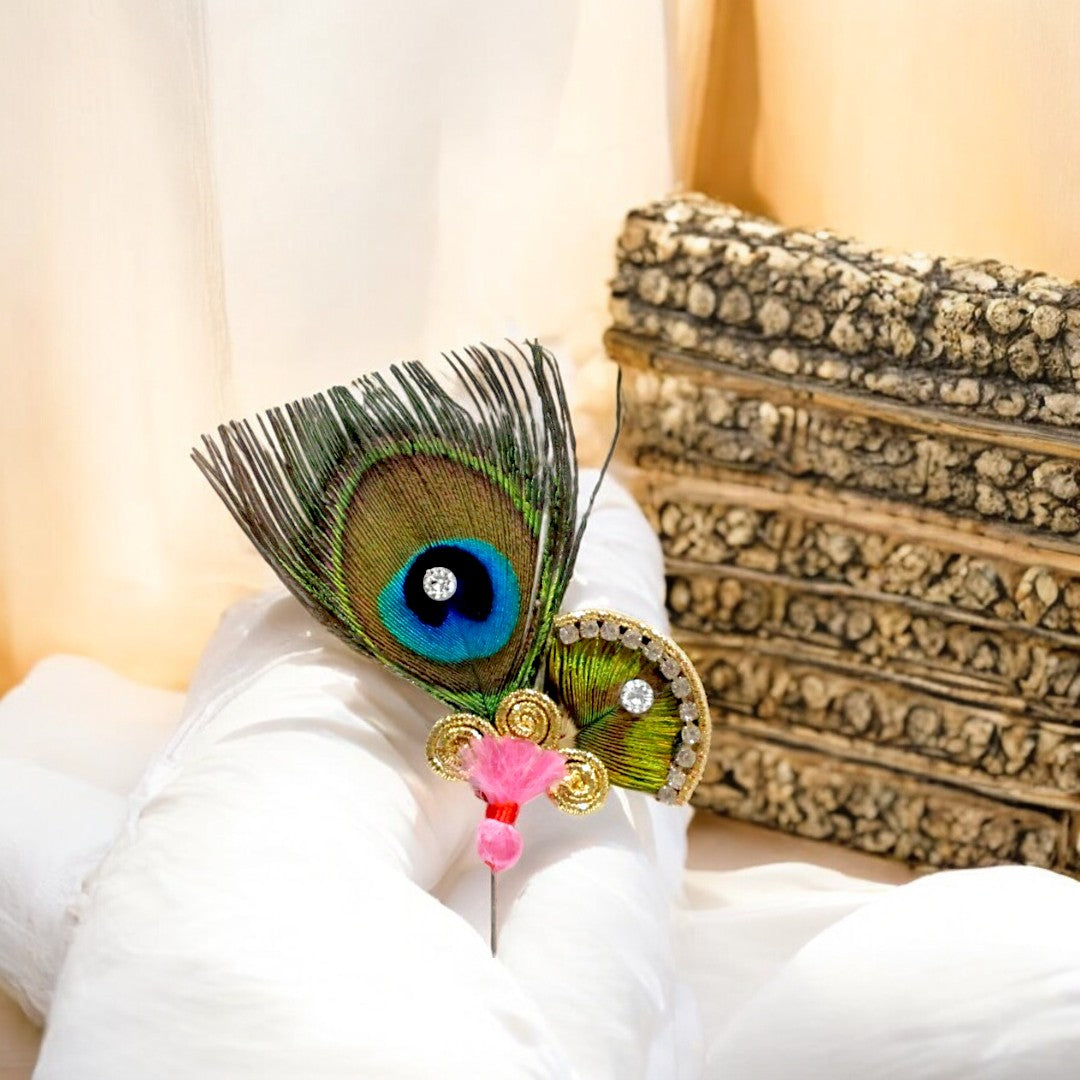 ✔️ Easy to Attach: Lightweight and easy to fix on Laddu Gopal Ji’s Mukut or Pagdi.