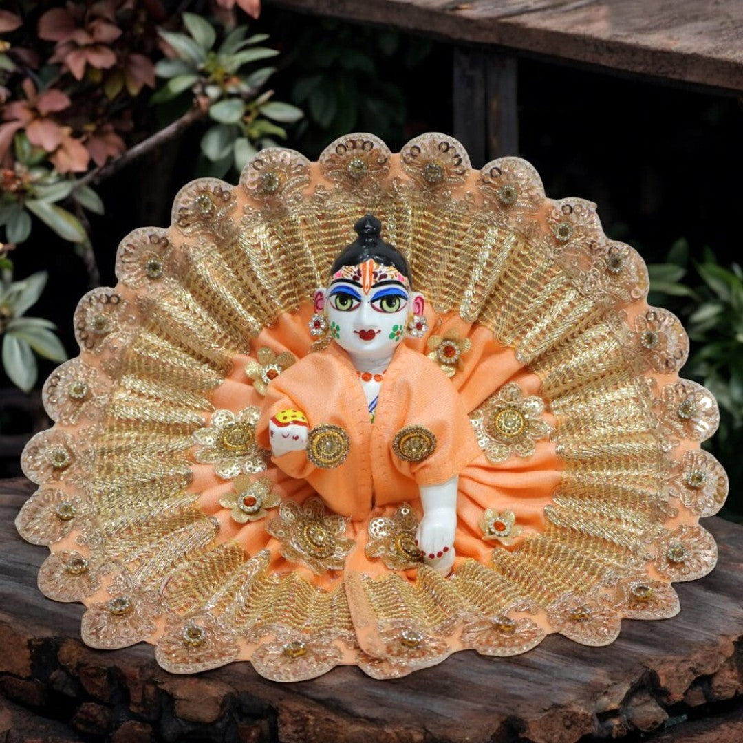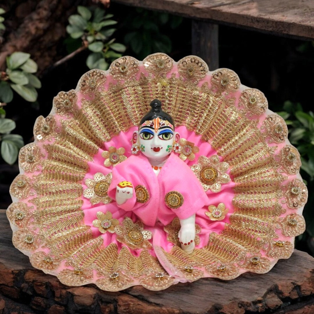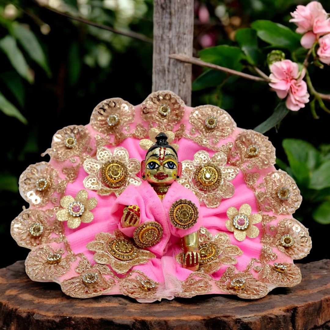 Dress your Laddu Gopal Ji in this exquisite Laddu Gopal Ji Poshak from Shri Poshak, crafted with premium fabrics like silk and cotton. It features intricate embroidery, vibrant colors, and delicate detailing, perfect for adorning your idol during daily worship or special occasions like Janmashtami, Diwali, and more.