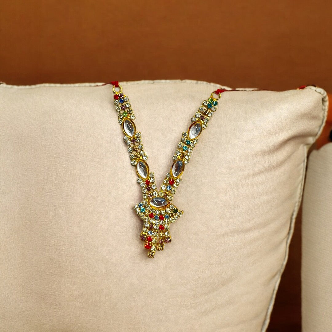 Add a royal charm to your beloved deity’s appearance with this exquisitely handcrafted Haar Maala, designed to radiate divine energy and elegance.