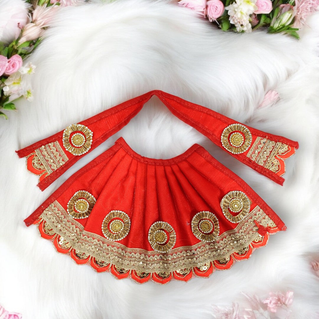 Perfect for festivals, special occasions, or daily adornment, this Lehenga Patka adds a divine touch to your deity, embodying tradition, beauty, and reverence.