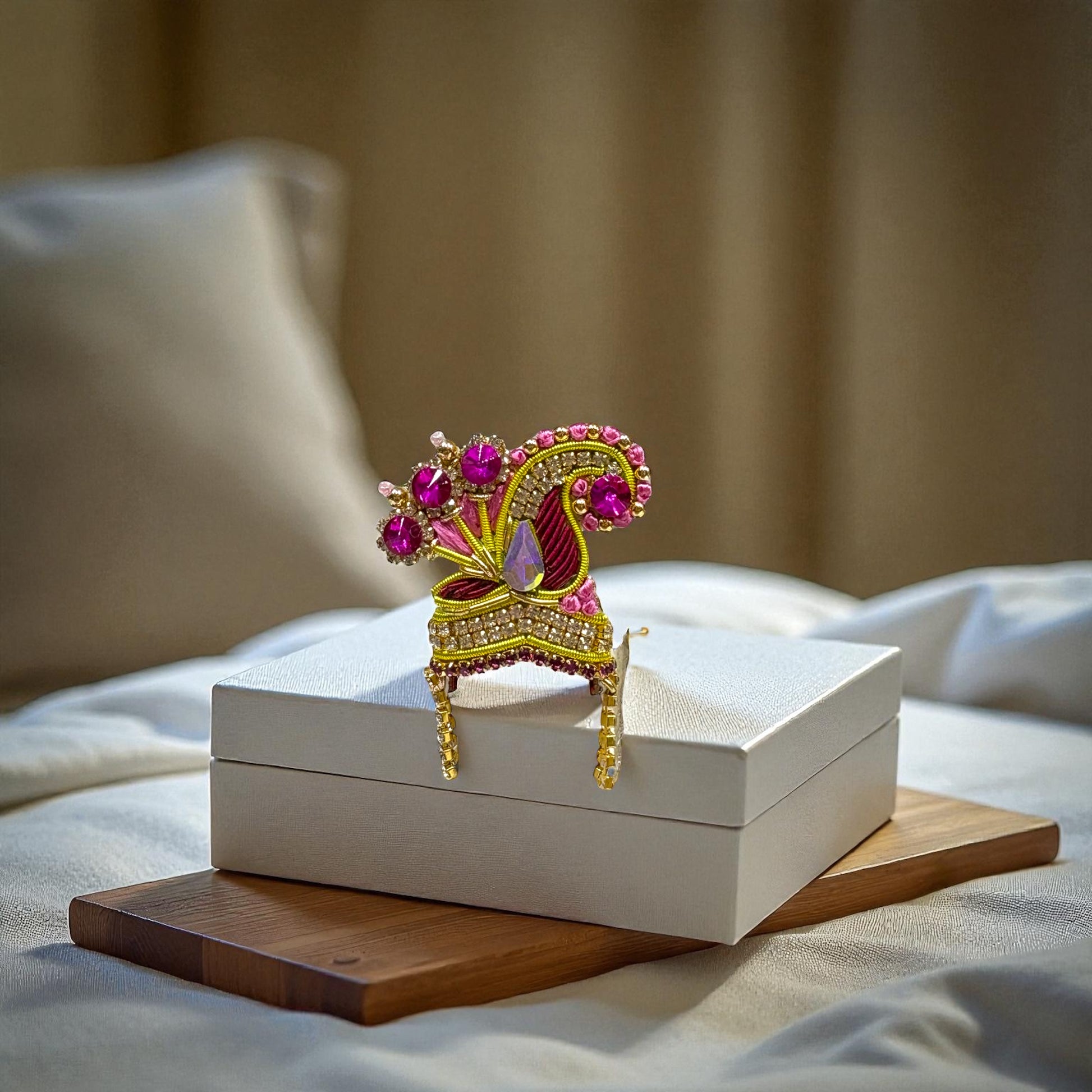 | Without Baal (Wig) | ONE size SMALLER than your idol. | Without the wig, the smaller size will ensure the crown sits snugly and does not slip off the idol's head. (e.g., If your idol is Size 4, choose a Size 3 Mukut.) |