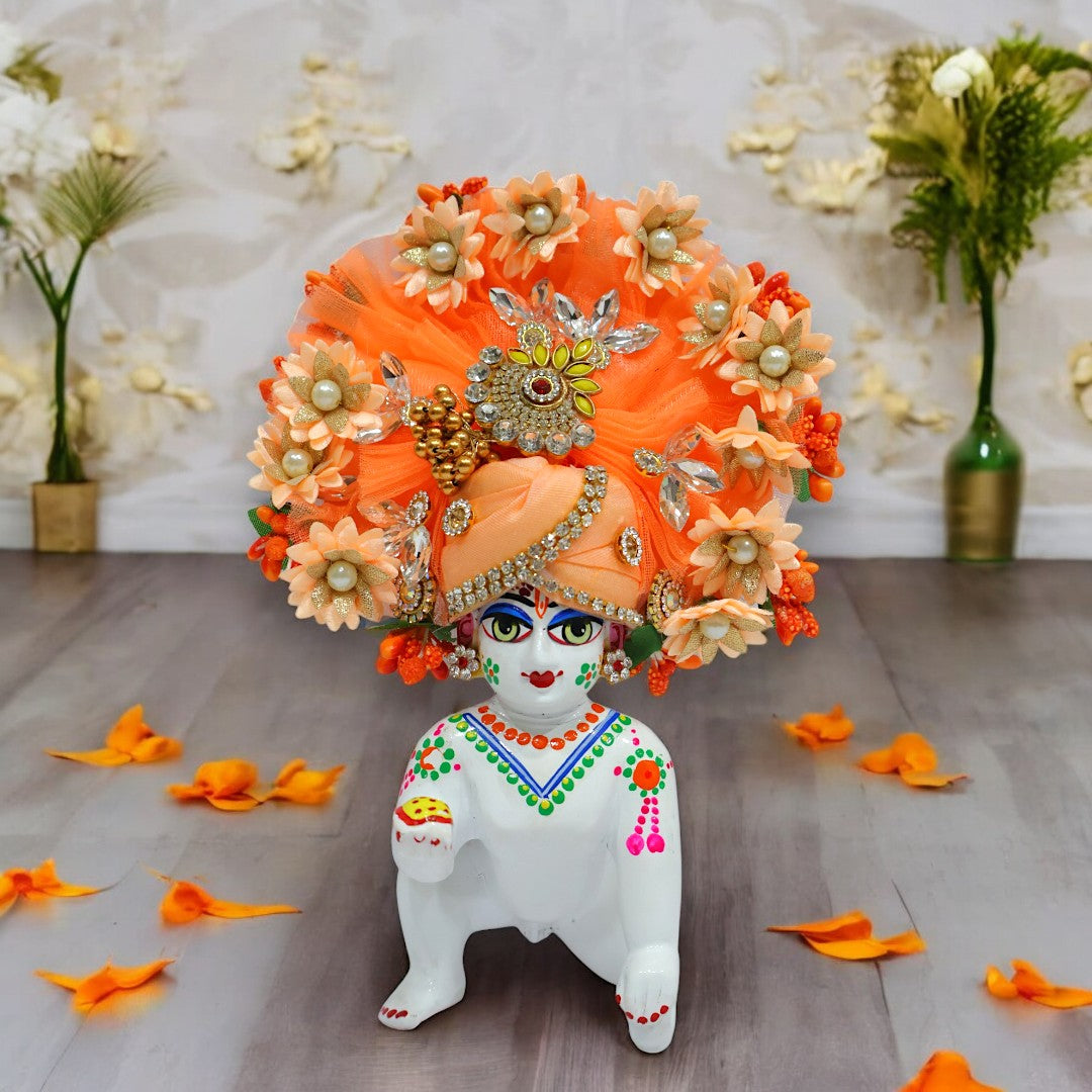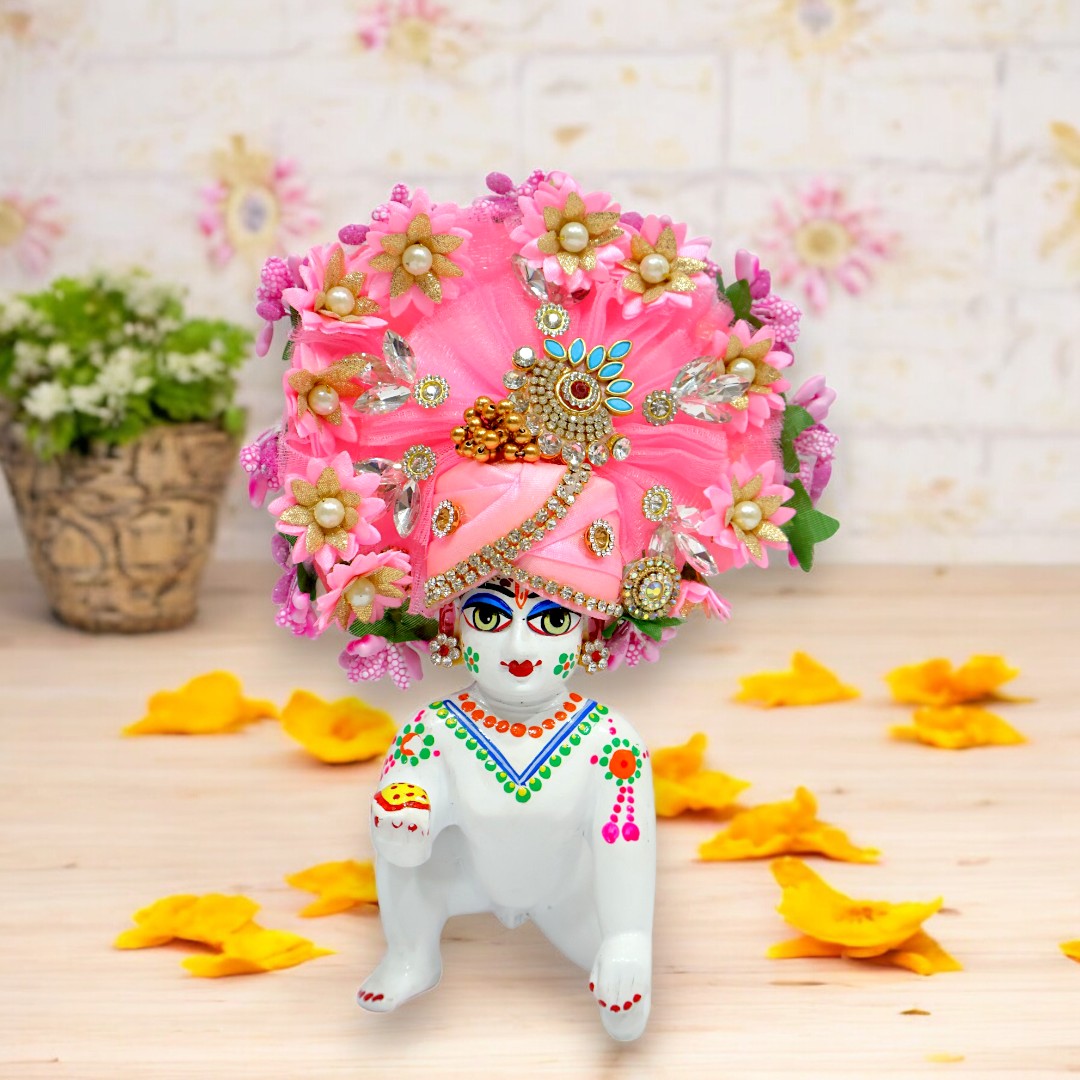 This beautifully crafted Pagree (headpiece) is designed especially for Laddu Gopal Ji, Lord Krishna's beloved form. Made with exquisite fabric, it is an ideal accessory for adorning your deity with grace and elegance.