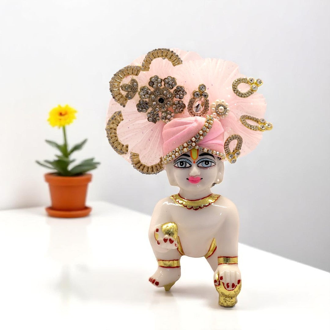 This beautifully crafted Pagree (headpiece) is designed especially for Laddu Gopal Ji, Lord Krishna's beloved form. Made with exquisite fabric, it is an ideal accessory for adorning your deity with grace and elegance.