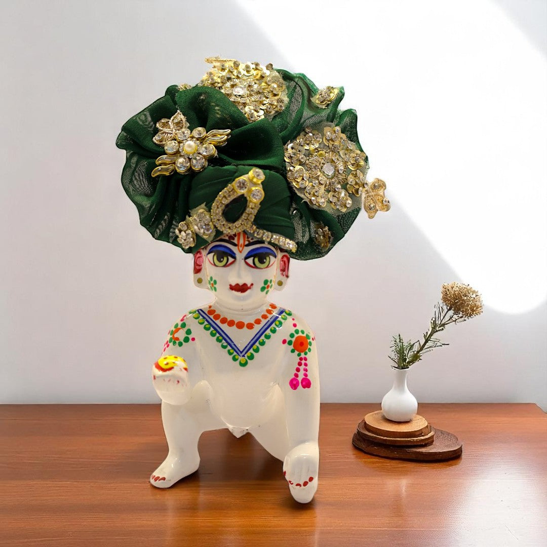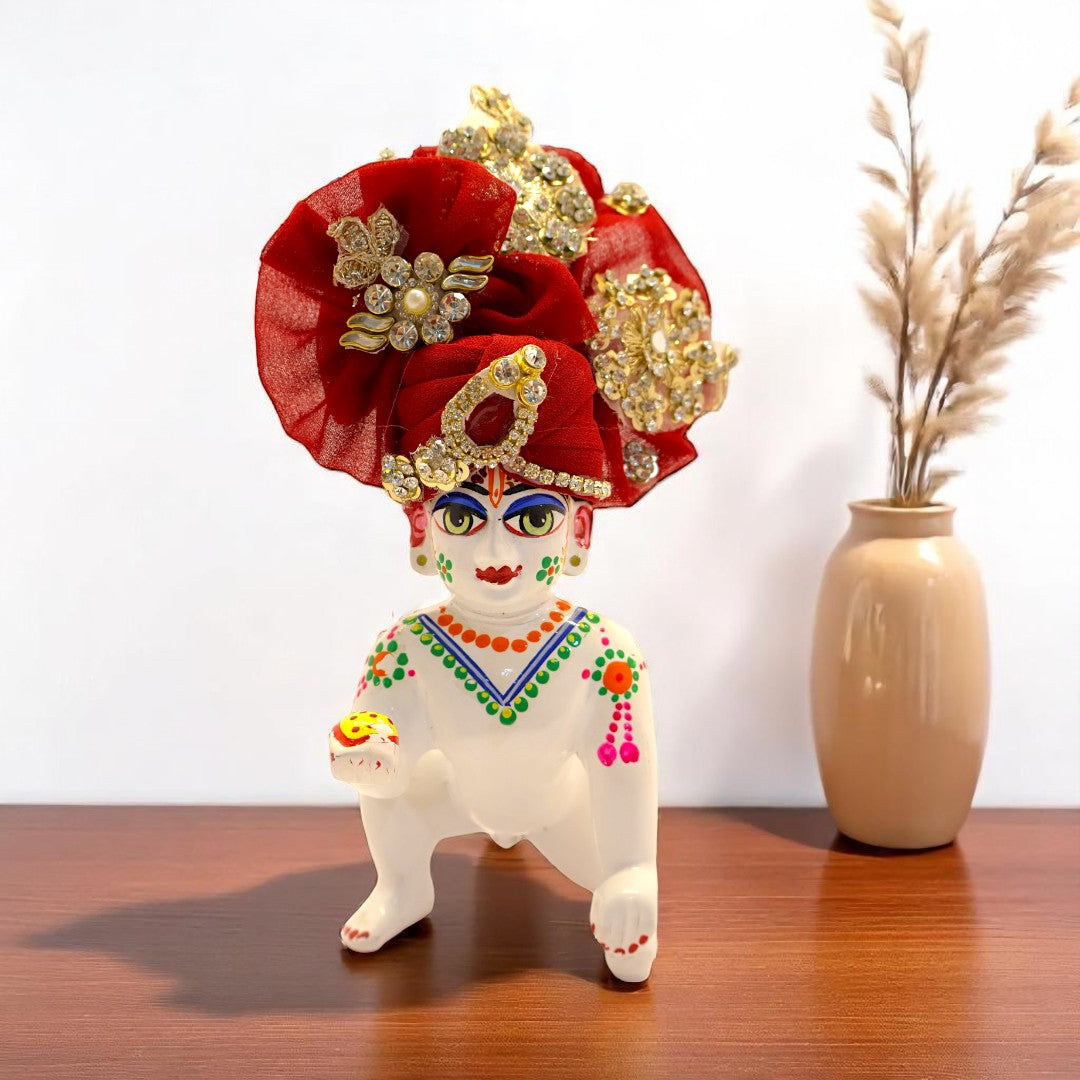 This beautifully crafted Pagree (headpiece) is designed especially for Laddu Gopal Ji, Lord Krishna's beloved form. Made with exquisite fabric, it is an ideal accessory for adorning your deity with grace and elegance.