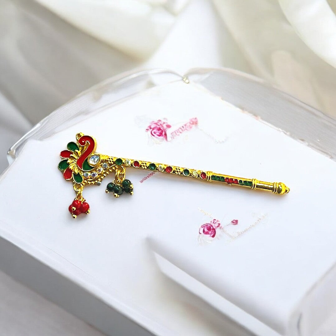 🎵 Add a touch of divine melody to your idol's look with this colorful peacock bansi from Shri Poshak.