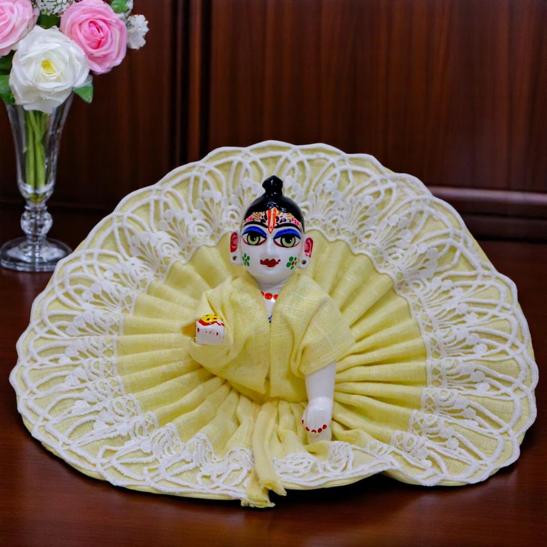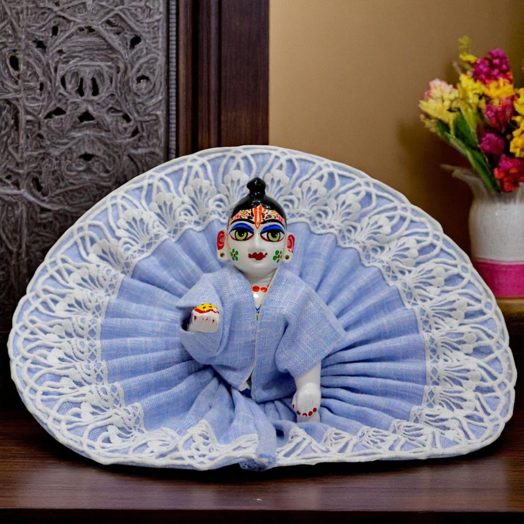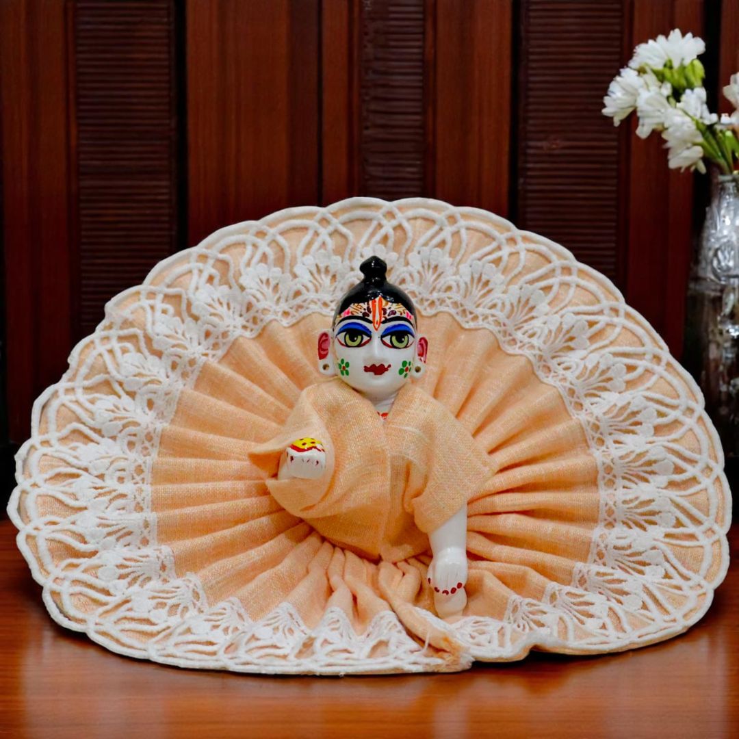 Keep your beloved Laddu Gopal Ji cool and comfortable this summer with our elegant Cotton Poshak, specially designed for the hot season. Made from breathable, lightweight cotton, this poshak ensures your deity stays fresh and serene throughout the day.