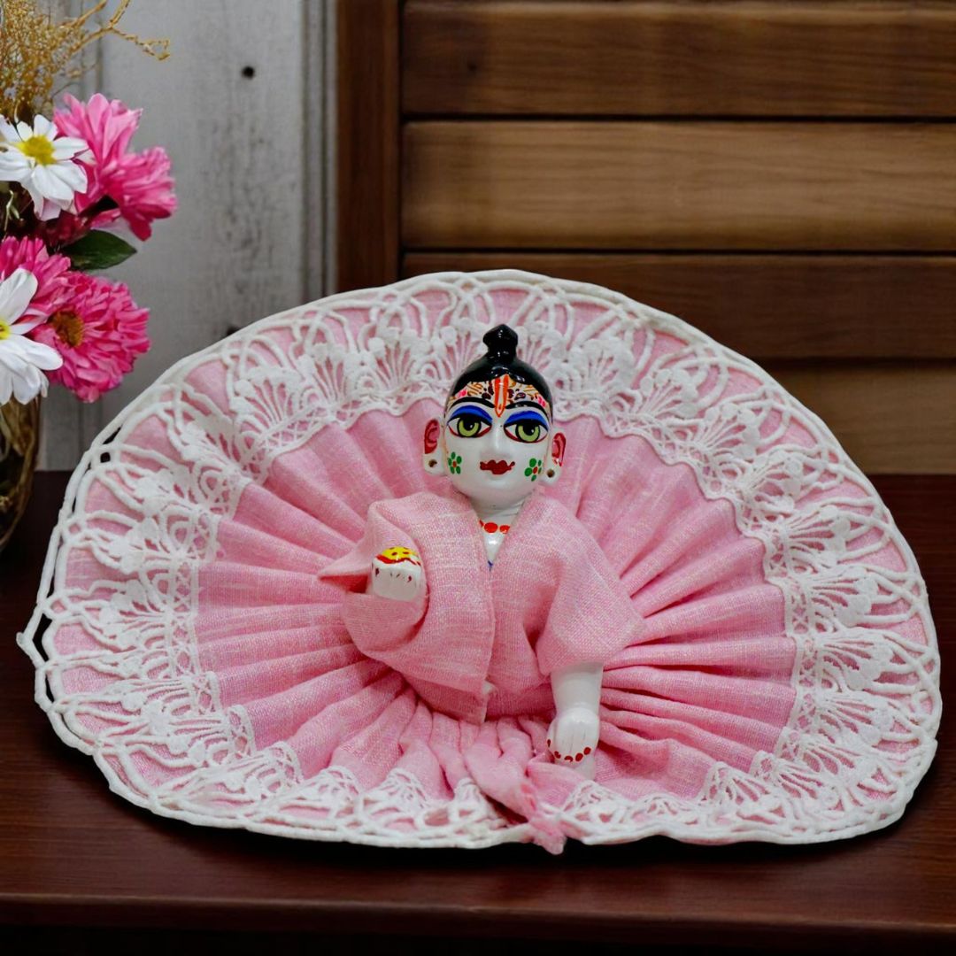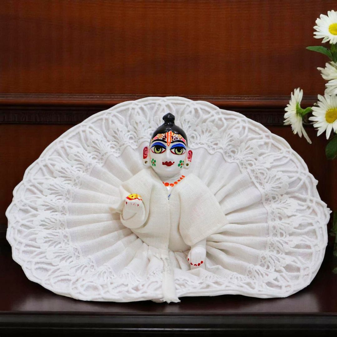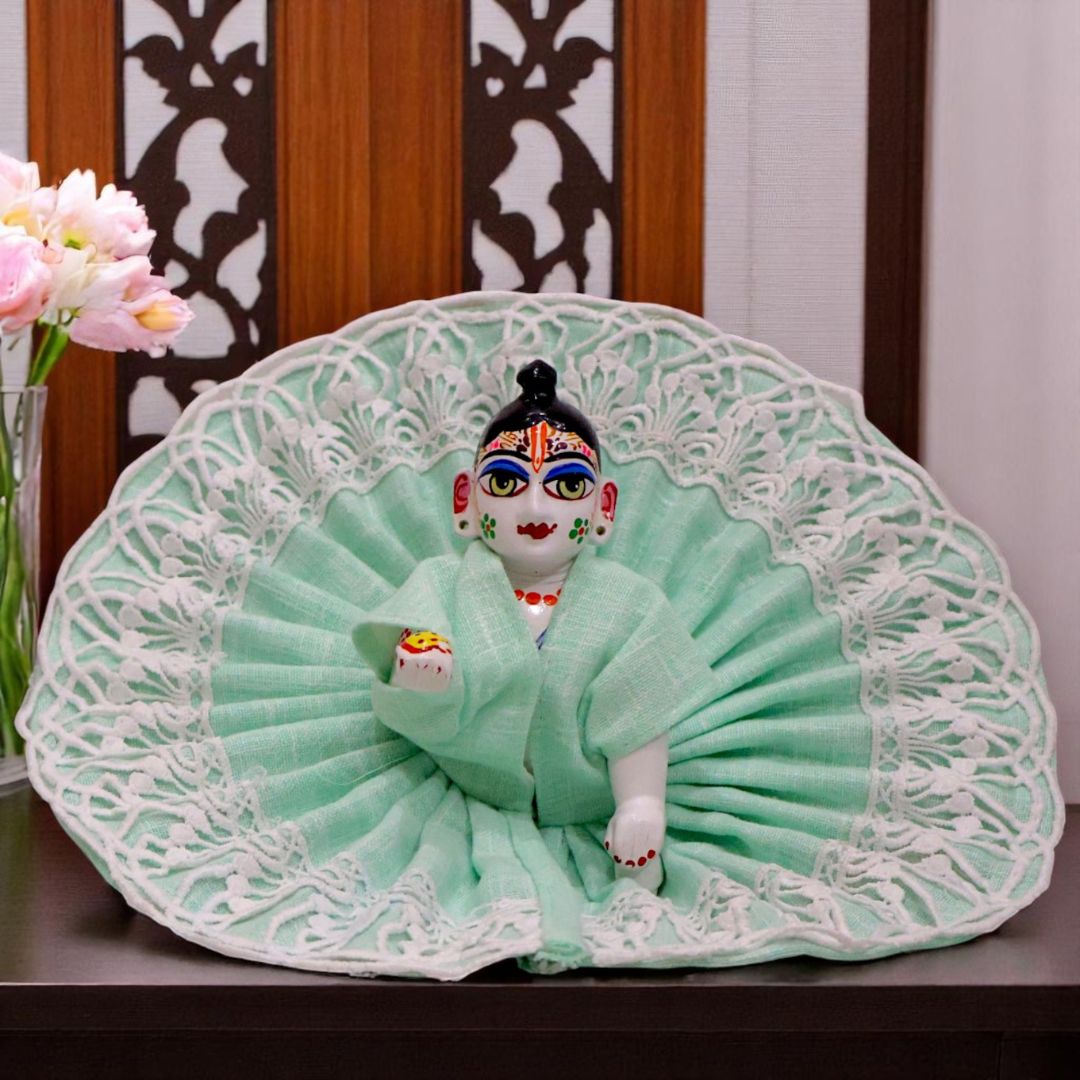 Keep your beloved Laddu Gopal Ji cool and comfortable this summer with our elegant Cotton Poshak, specially designed for the hot season. Made from breathable, lightweight cotton, this poshak ensures your deity stays fresh and serene throughout the day.