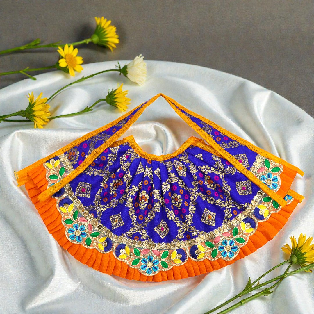 Exquisite Frill Work: The bottom of the lehenga is adorned with a meticulously pleated frill, adding volume and a contemporary "couture" finish that is rare in deity wear.