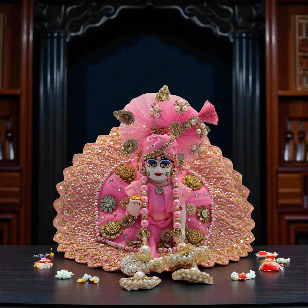 πΈ Designer Fan-Style Dress β Pleated skirt with a royal flair, ensuring a majestic look for your deity.