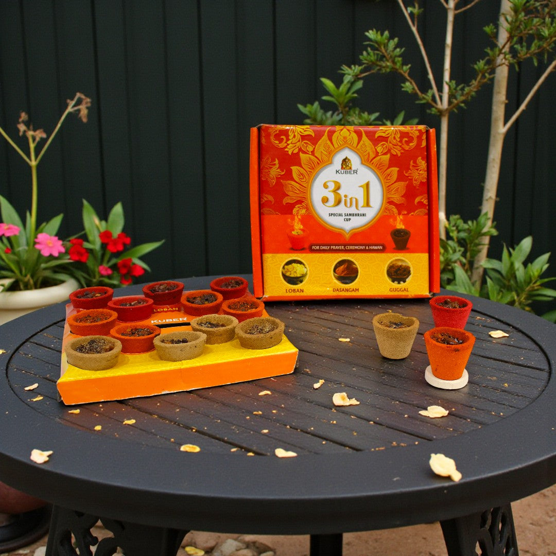 Kuber 3-in-1 Special Sambrani Cup Trio of Sacred Fragrance