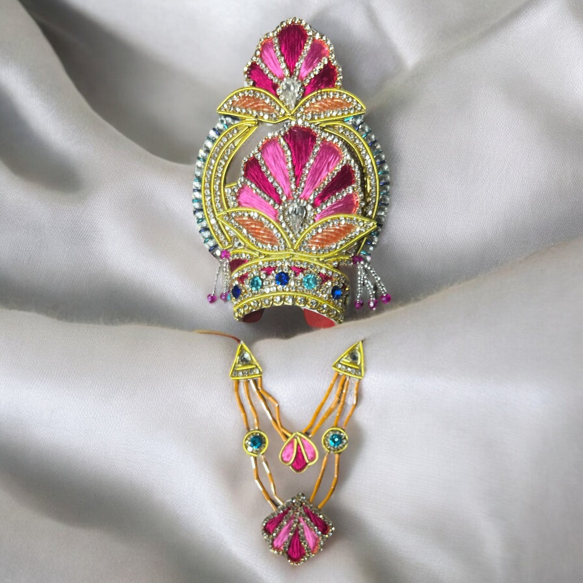 Order Now and adorn your beloved deity with this elegant Mukut Mala Set, exclusively available at SHRI POSHAK!