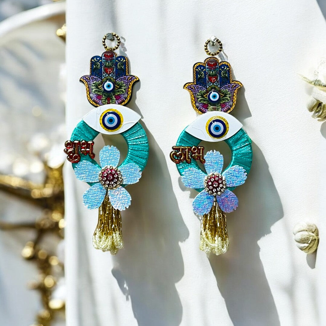Hamsa Hand & Evil Eye Motif – A powerful symbol to ward off negativity and attract good vibes.