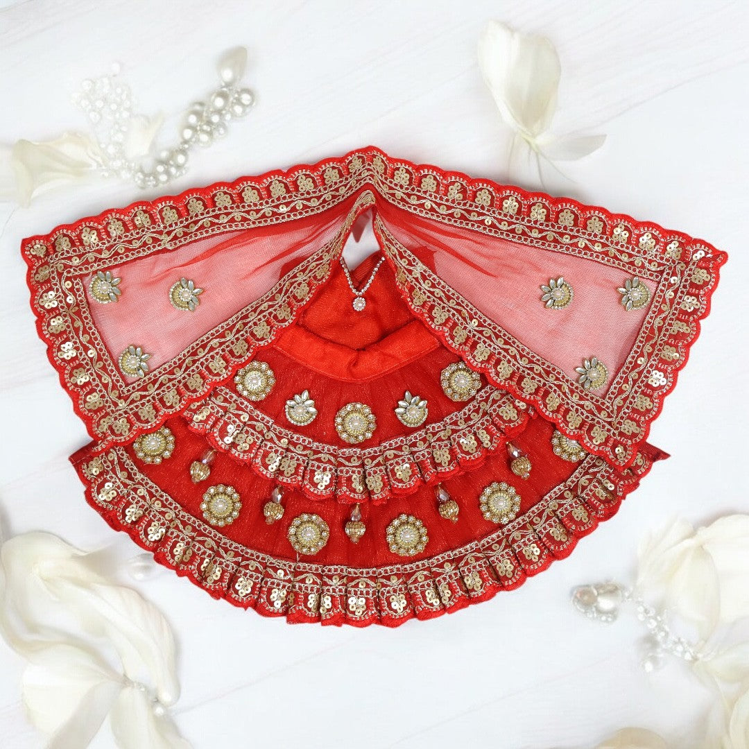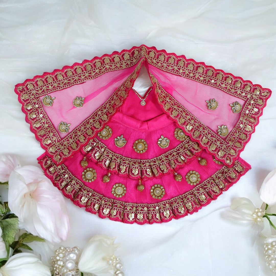 Step into divine elegance with our SP-F58 Durga Set, crafted to give you a royal and devotional look for special occasions. This 3-piece set comes with a beautifully flared Lehnga, intricately designed Choli, and a matching Dupatta that completes the traditional charm.