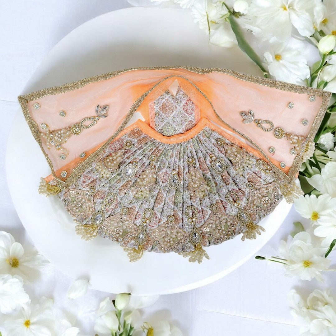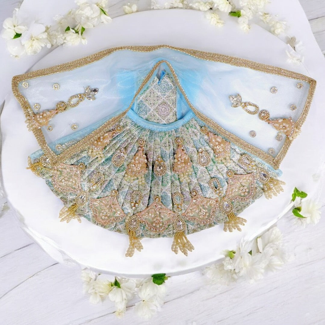 The pastel base with golden highlights brings a soothing yet regal touch, making this set stand out as a true work of devotion and artistry. Every intricate detail reflects timeless craftsmanship, ensuring your Goddess shines with luxury, elegance, and blessings.