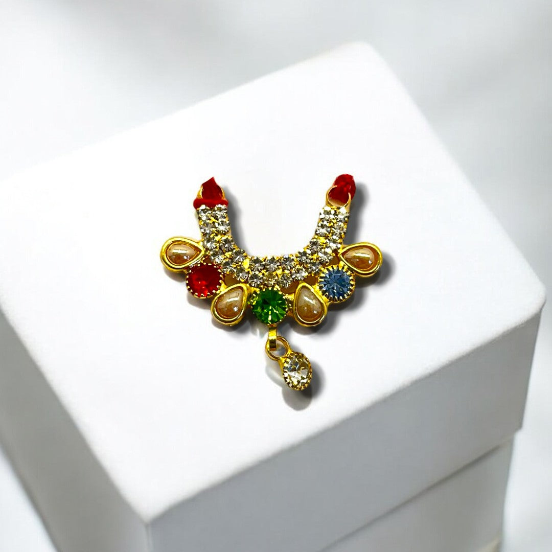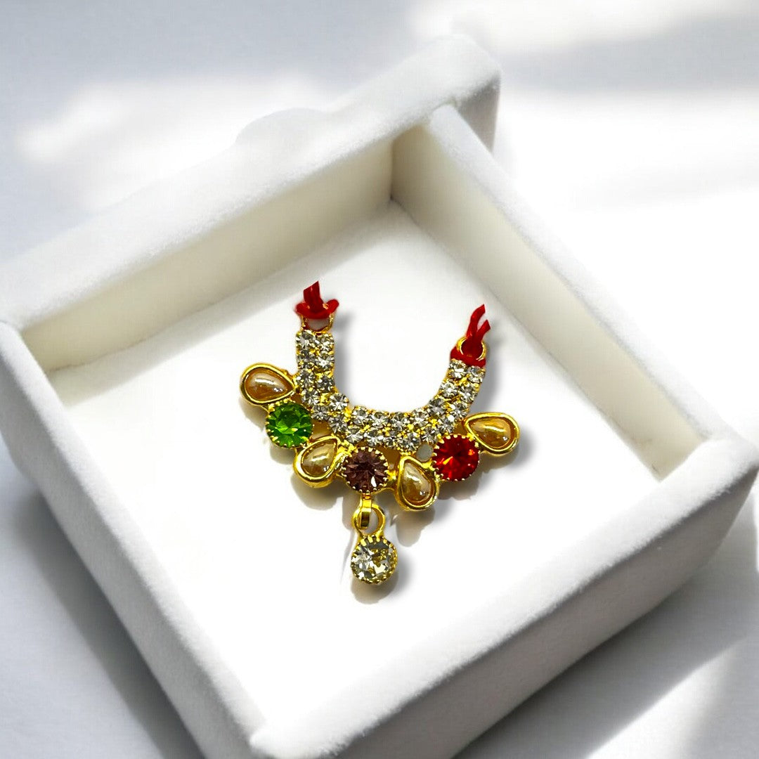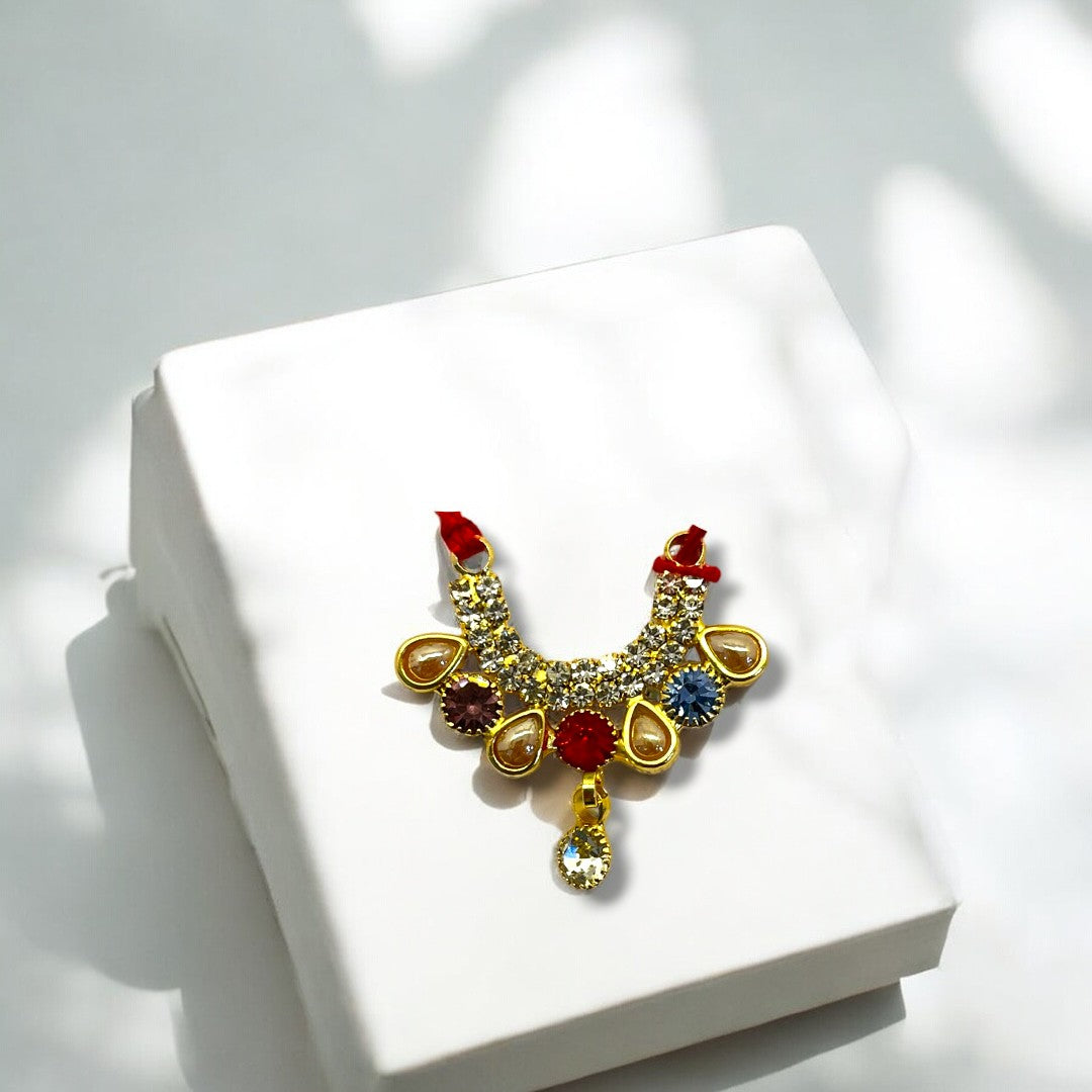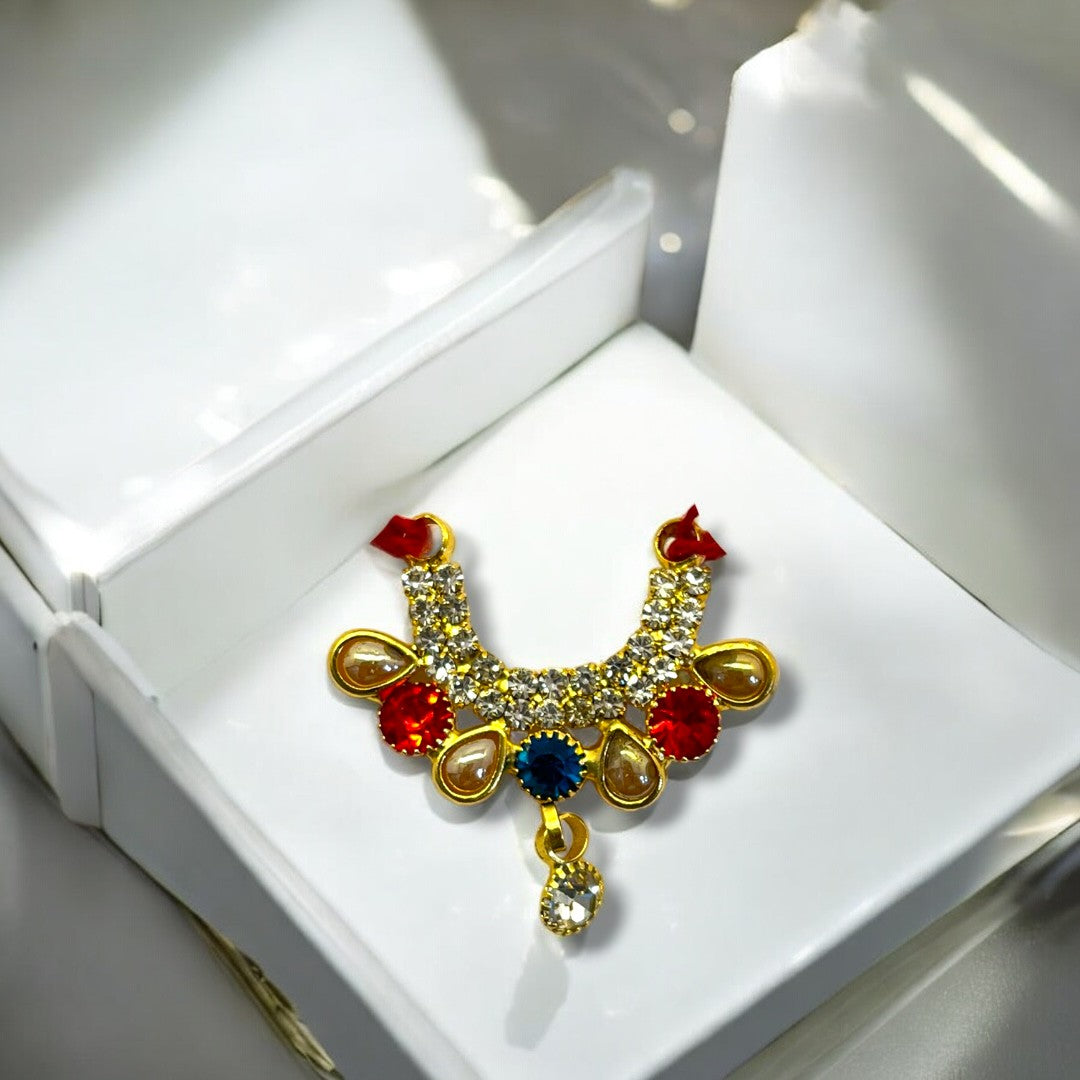 Add a sparkling charm to your deity's appearance with the Zerkin Chic Haar SPC-371, a beautifully designed ornament that blends traditional devotion with a modern chic finish. Adorned with premium-quality zerkin stones, this haar is perfect for enhancing the divine beauty of Radha Krishna, Laddu Gopal, or Mata Rani idols.