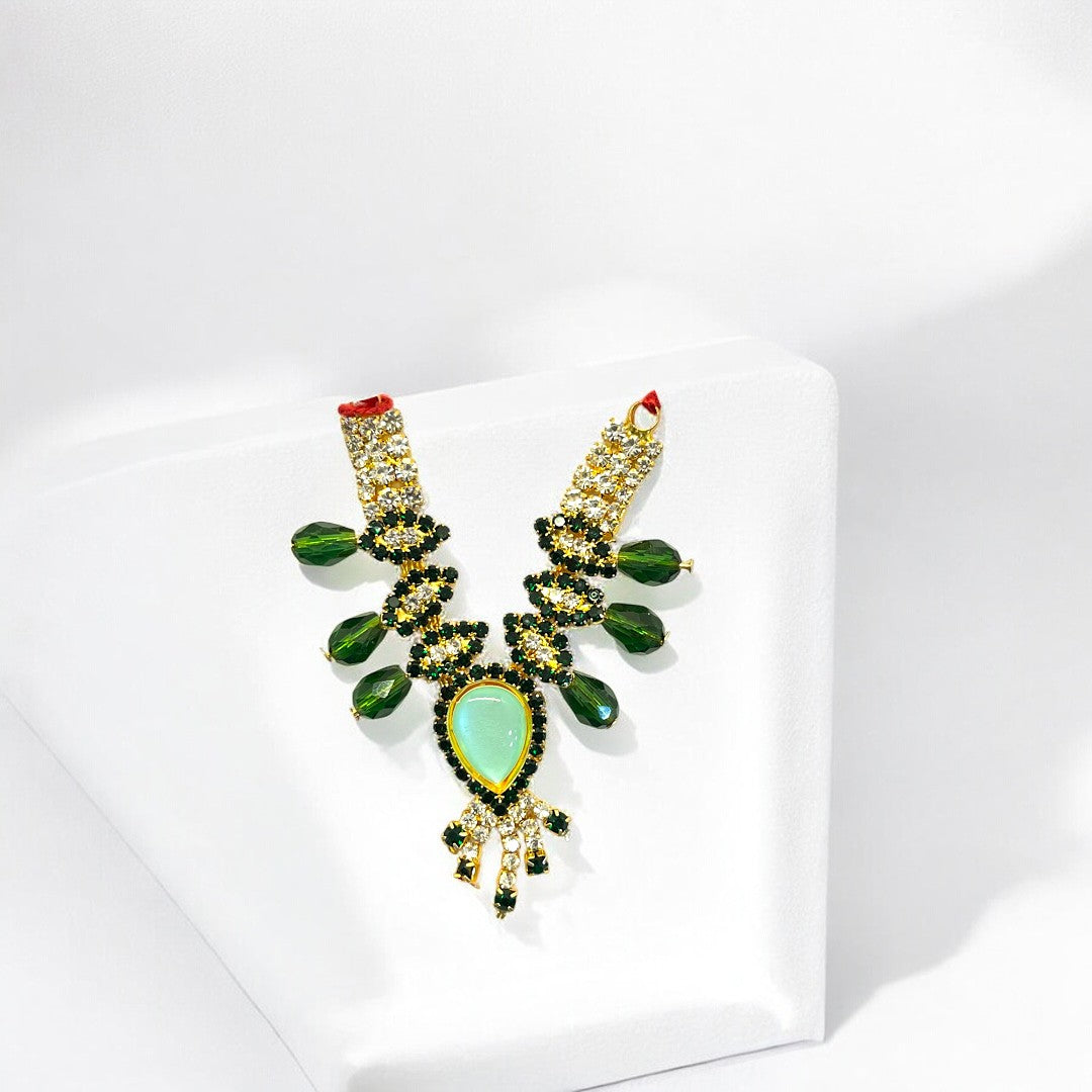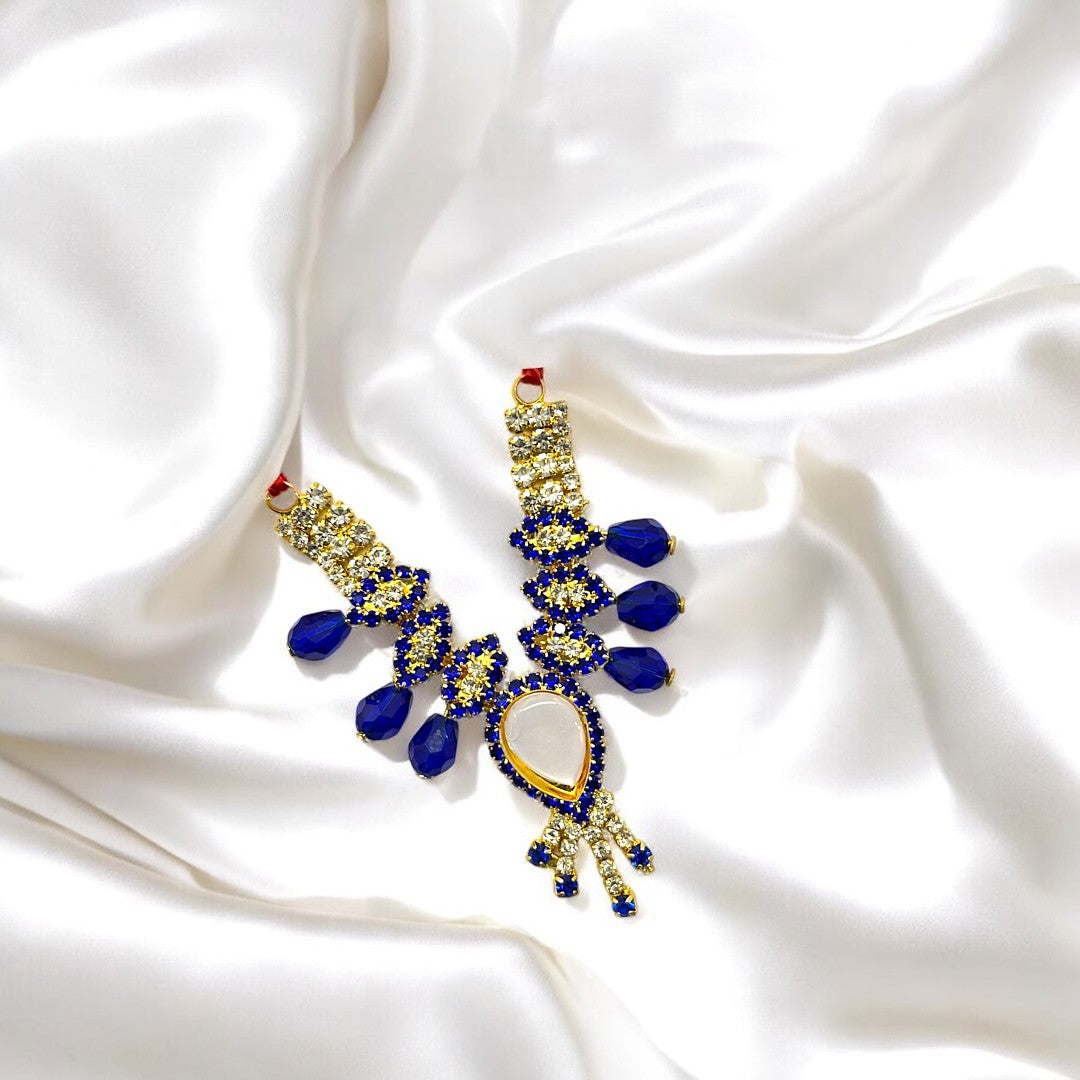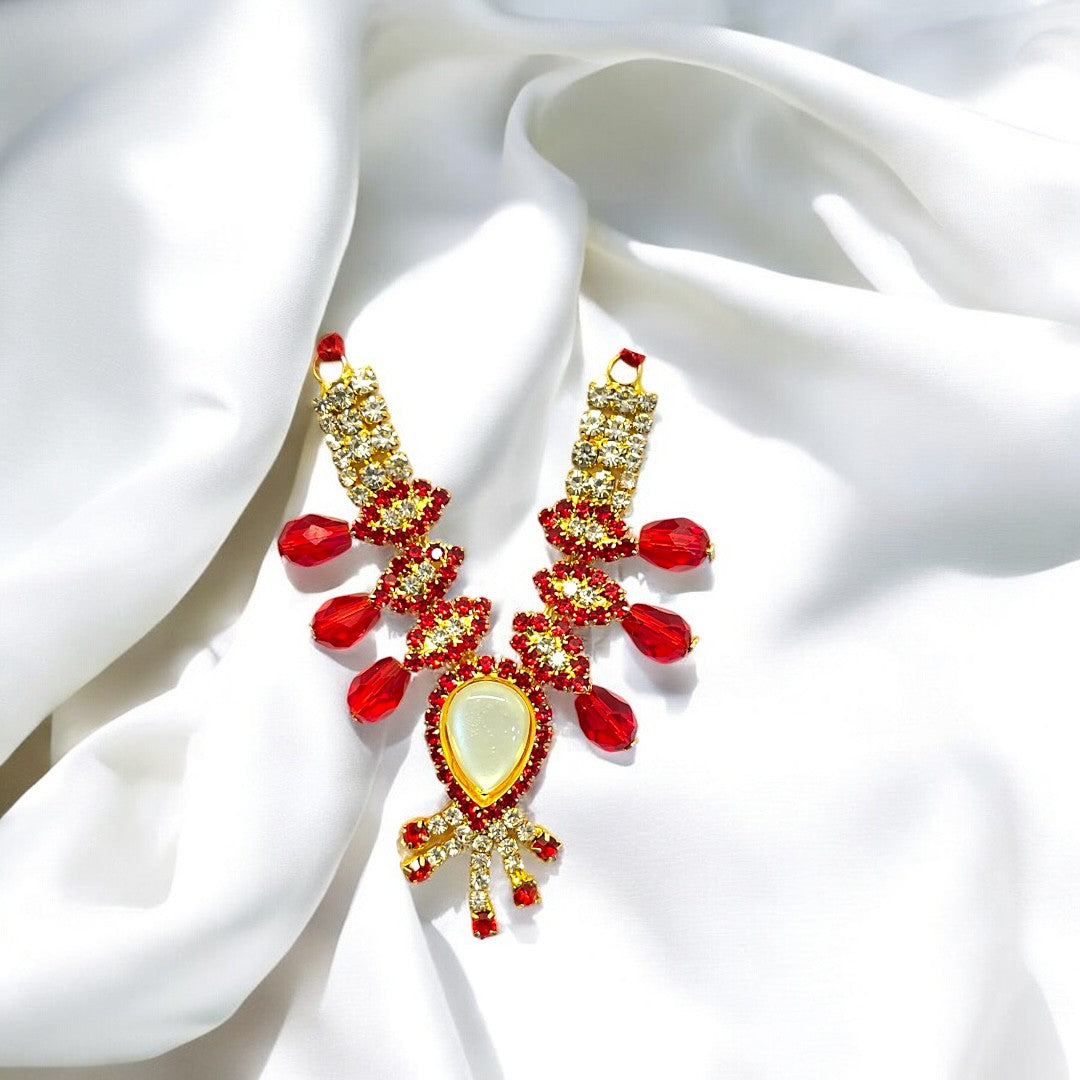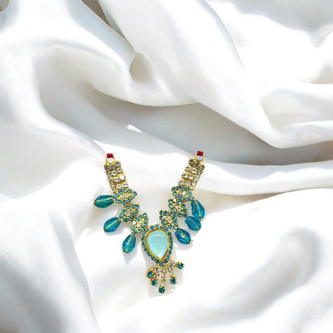 Grace your deity with the royal touch of the Zerkin Haar SPC-375, designed to reflect divine elegance and devotion. This beautifully handcrafted haar is studded with premium-quality zerkin (American diamonds) that shine with every glance, making it a perfect addition to your idol’s sacred appearance.