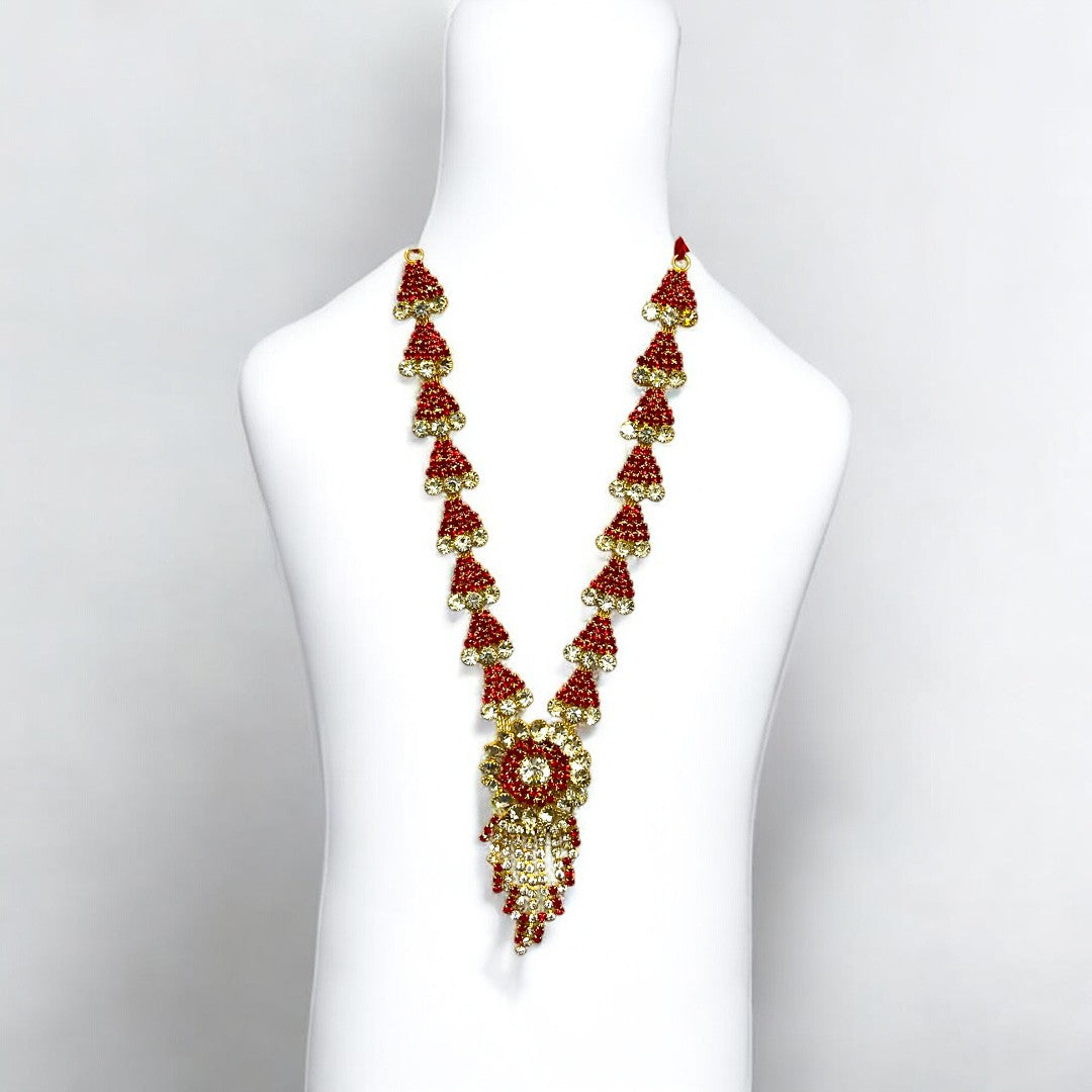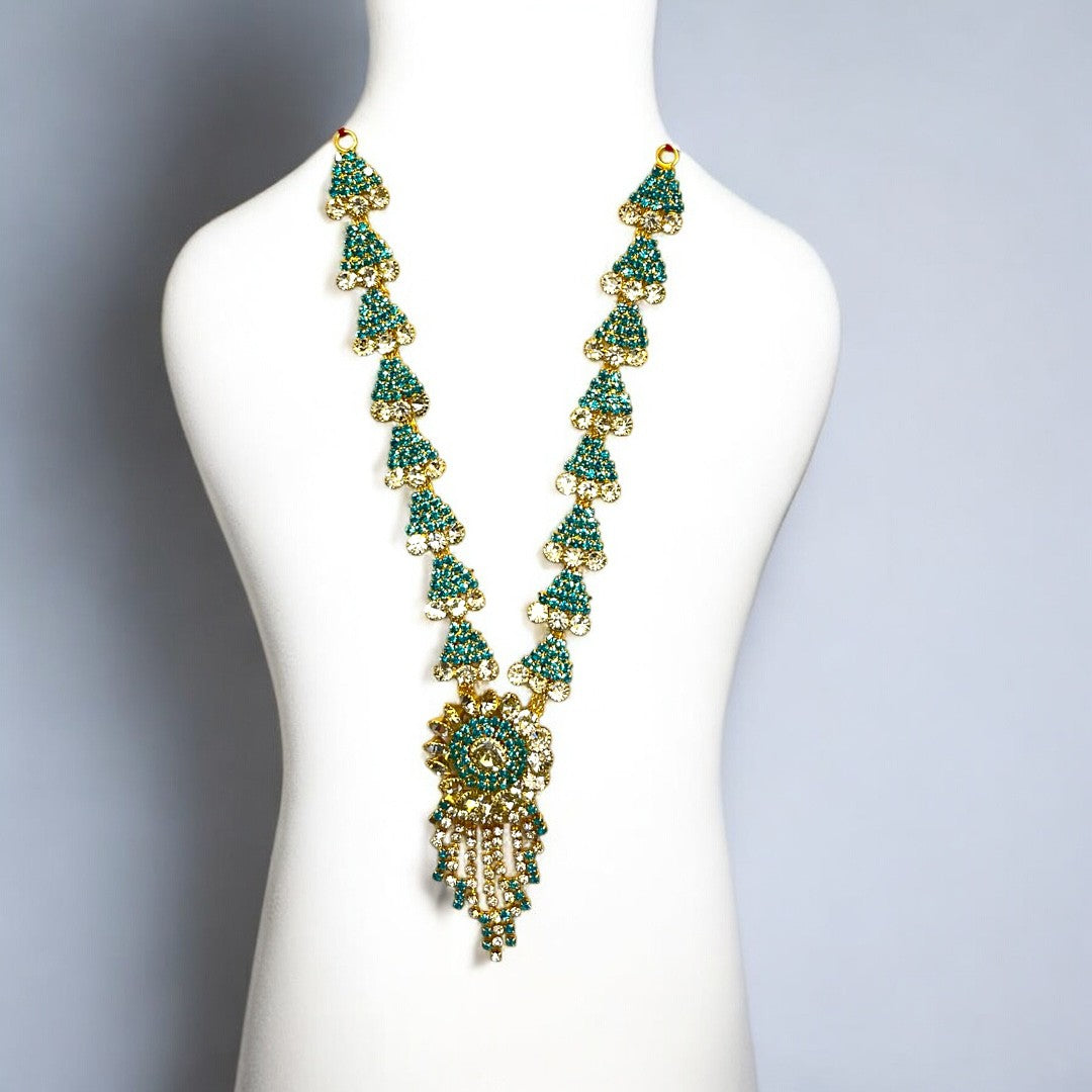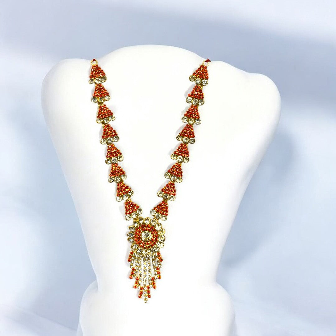 Elevate the divine presence of your home altar with our meticulously crafted SPC-379 Zerkin Haar. This exquisite long necklace is designed to add a royal touch to idols of all sizes, featuring a brilliant blend of traditional craftsmanship and contemporary sparkle.
