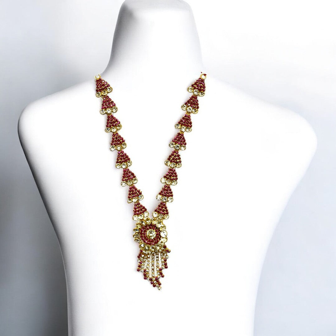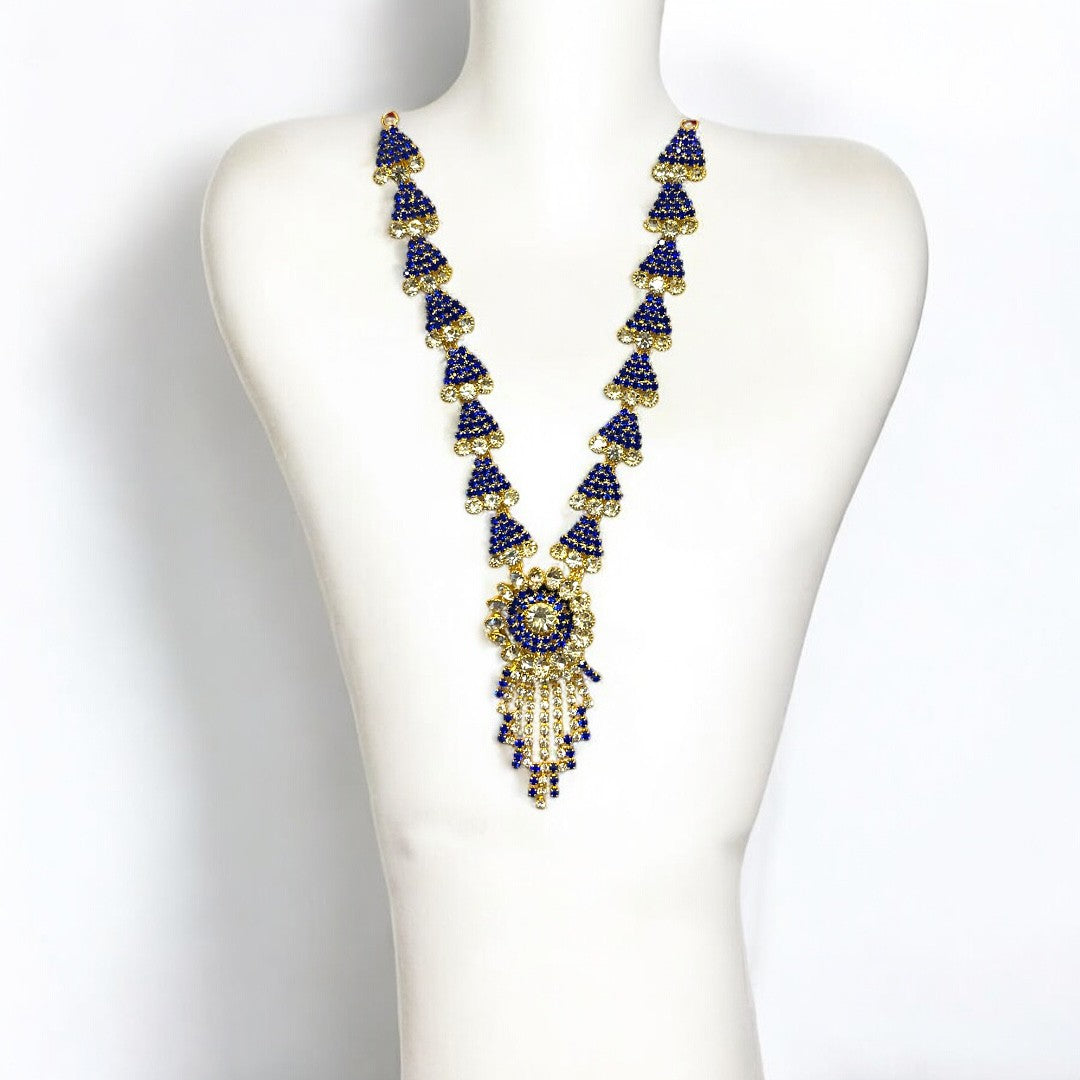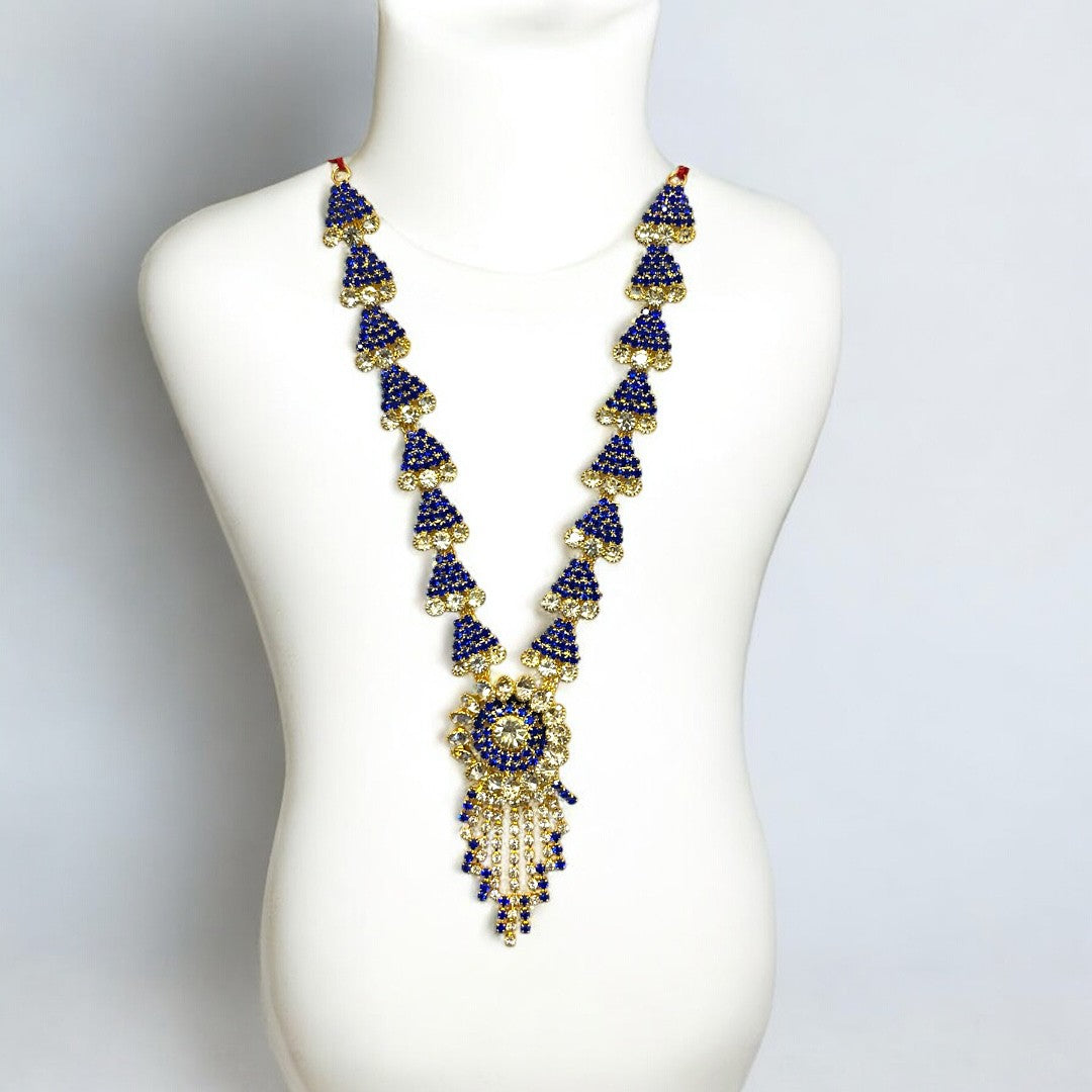 Elevate the divine presence of your home altar with our meticulously crafted SPC-379 Zerkin Haar. This exquisite long necklace is designed to add a royal touch to idols of all sizes, featuring a brilliant blend of traditional craftsmanship and contemporary sparkle.