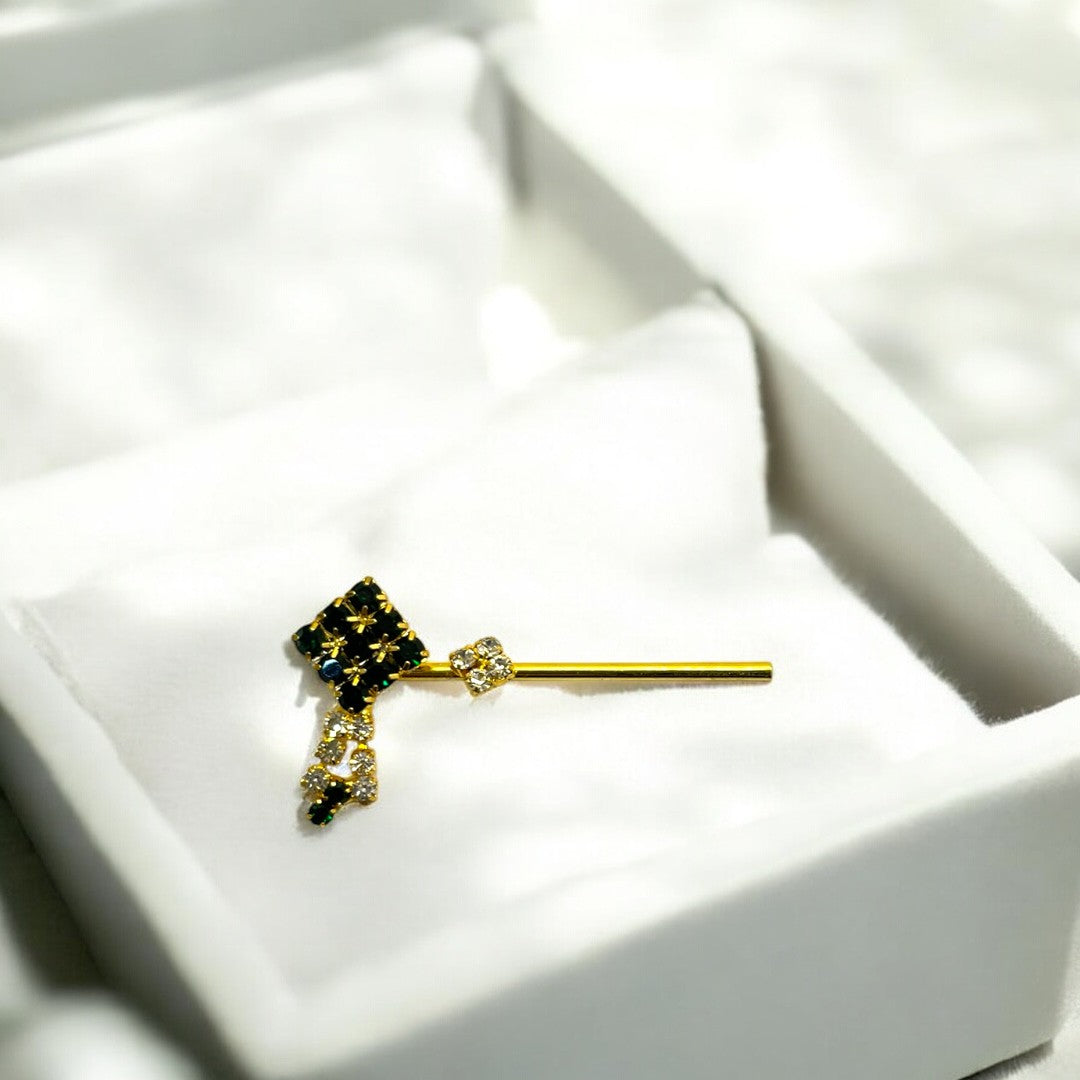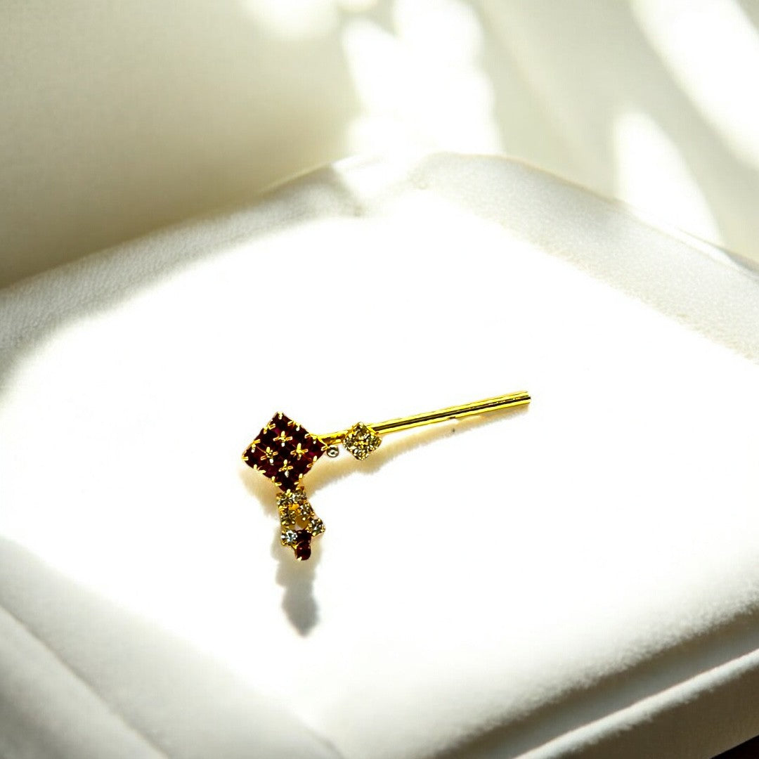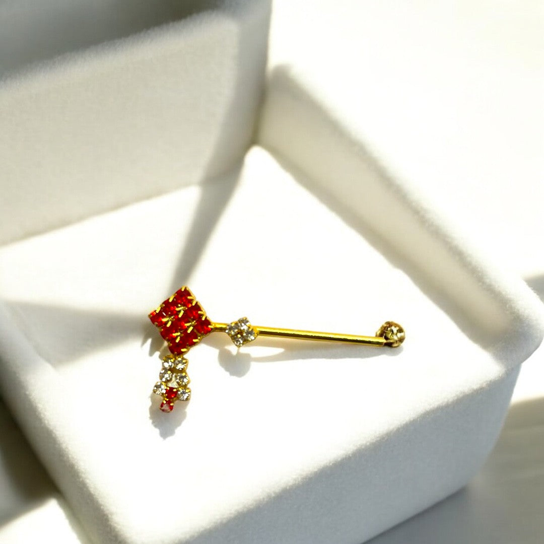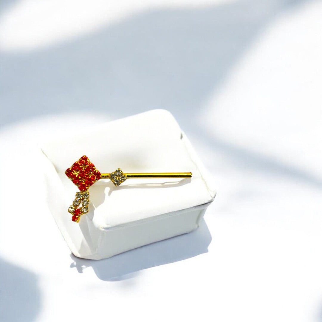Adorn your Thakur Ji with this exquisite handcrafted Bansi, designed to reflect the playful and divine charm of Lord Krishna. Featuring elegant red and green thread detailing, a glossy golden finish, and a vibrant red droplet charm, this Bansi adds a festive and devotional touch to your deity’s look. The intricate peacock-inspired design on the handle enhances its traditional beauty.