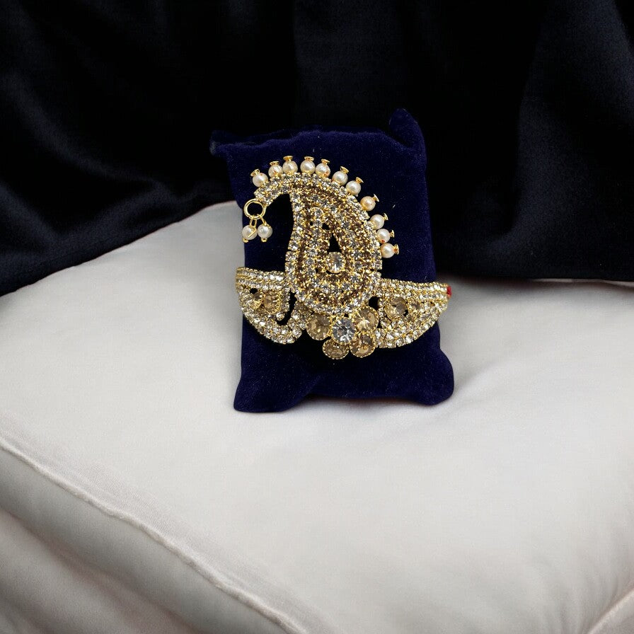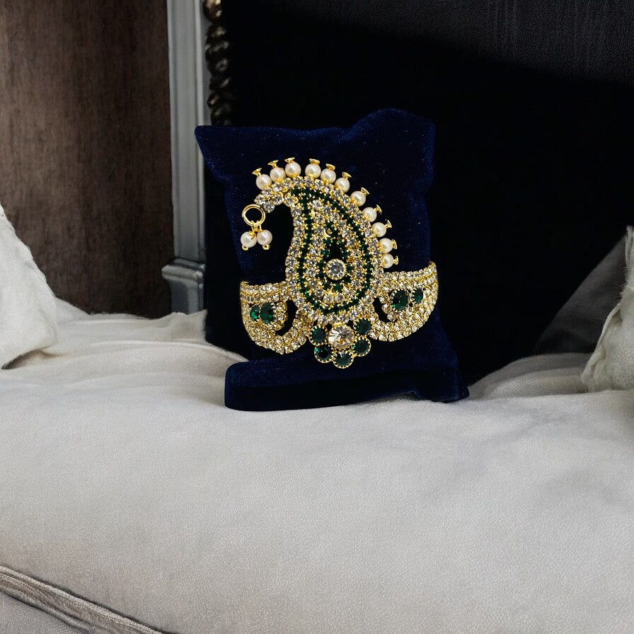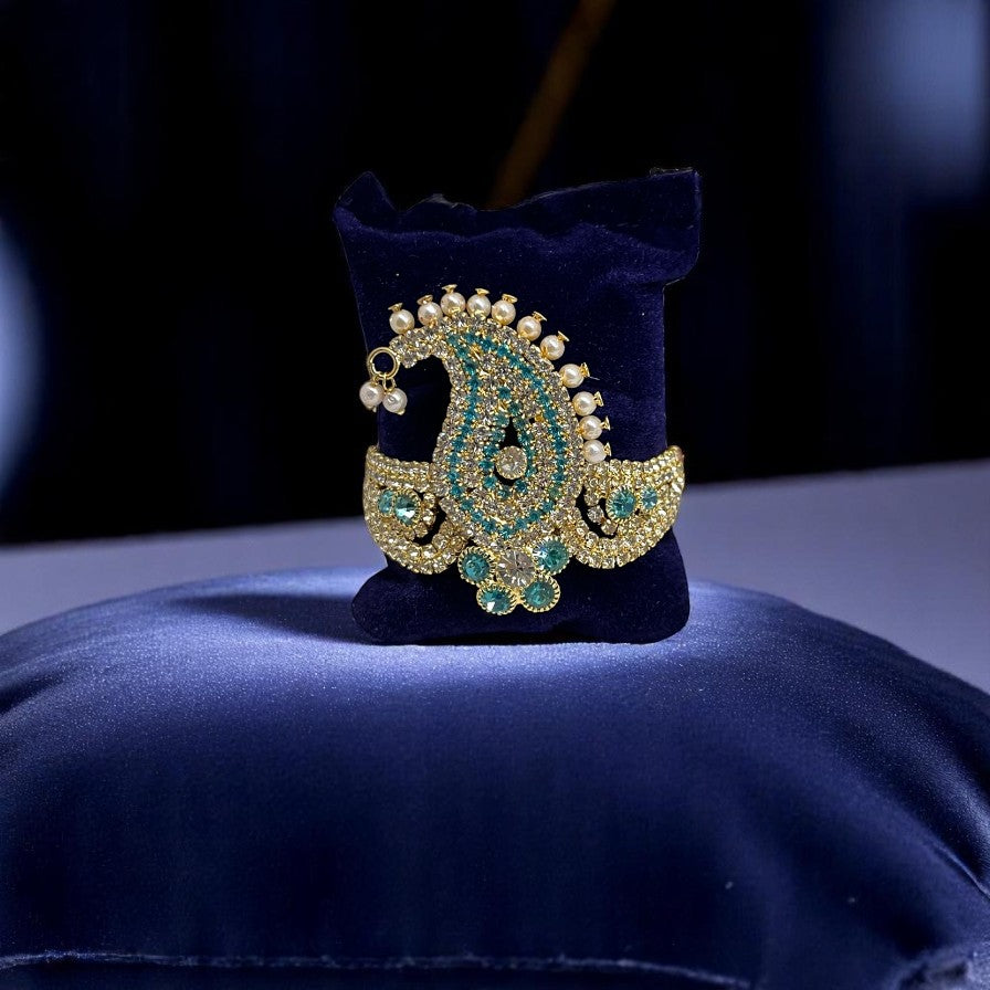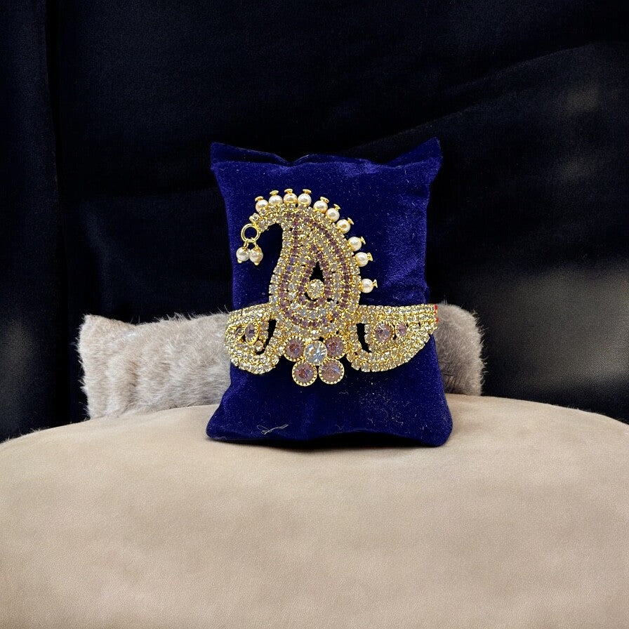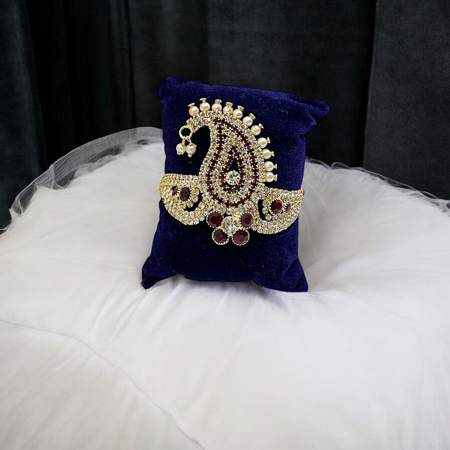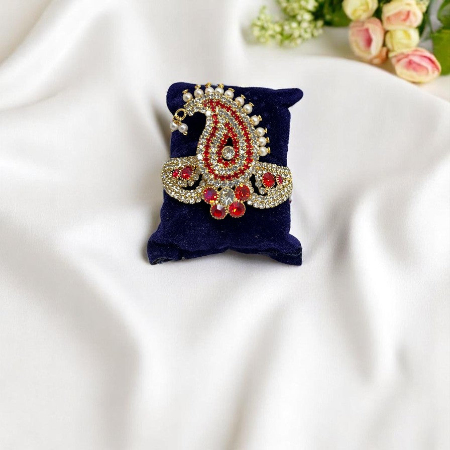 🔹 Design: Intricate paisley motif with red & white Zerkin stones